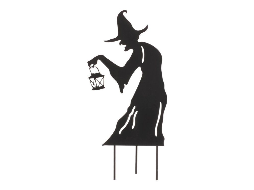 Kovový zápich čarodějnice s lucernou - černá dekorace na Halloween