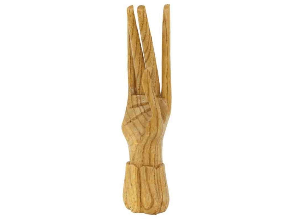 Dřevořezba ve tvaru ruky s rustikálním vzhledem je ideální pro zdůraznění přírodního stylu. Skvěle se hodí na poličky, stoly nebo komody, kde přinese osobitý šarm.
