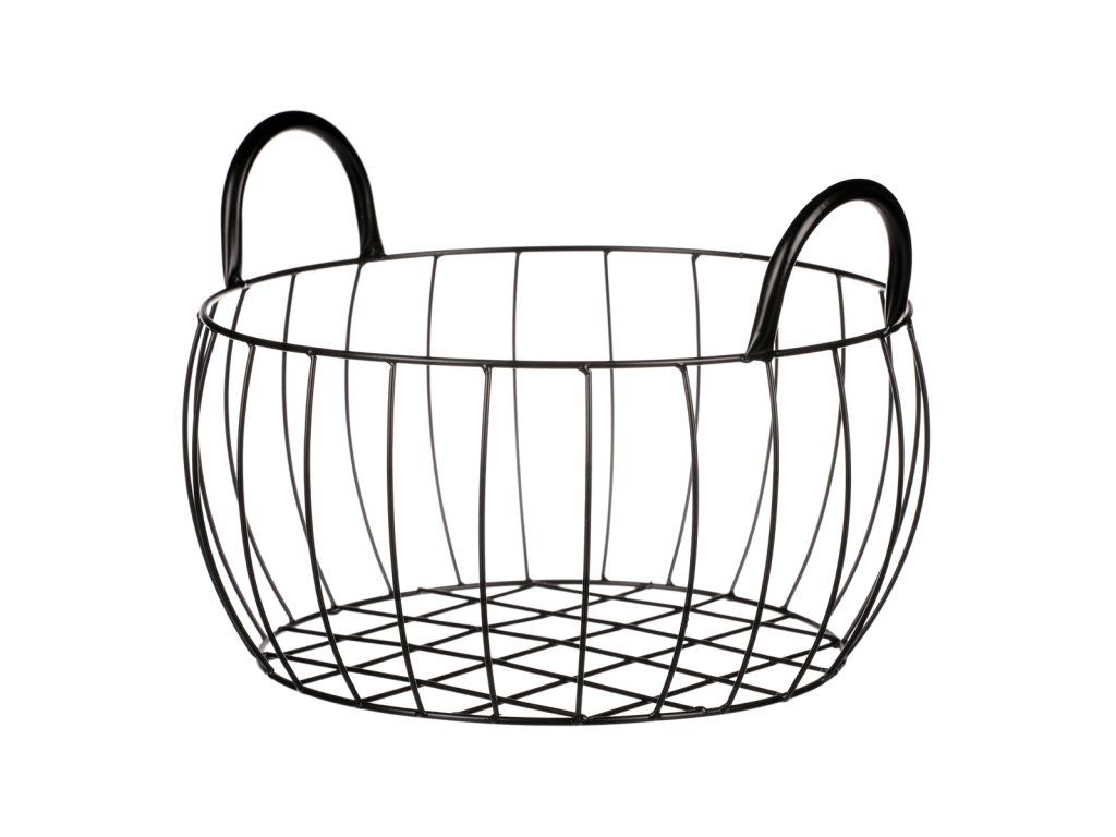 Černý kovový regálový koš s uchy – praktický organizér do domácnosti