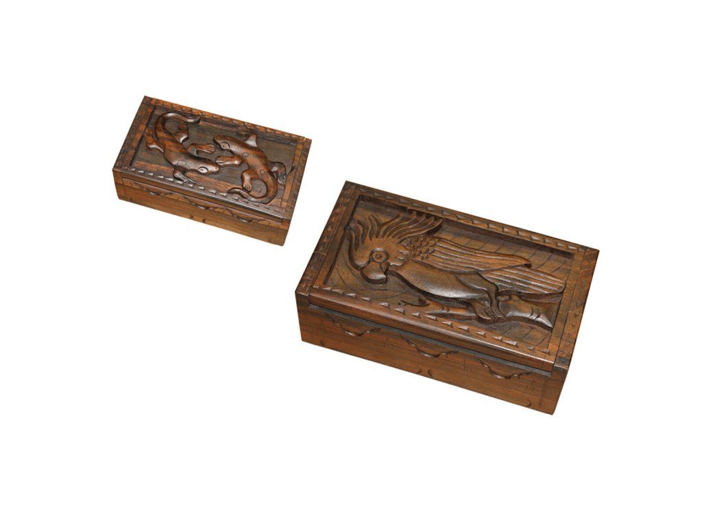Zdobená mahagonová krabička s exotickými motivy dodá prostoru osobitý vzhled. Přírodní odstín a detailní zdobení působí luxusně a originálně.