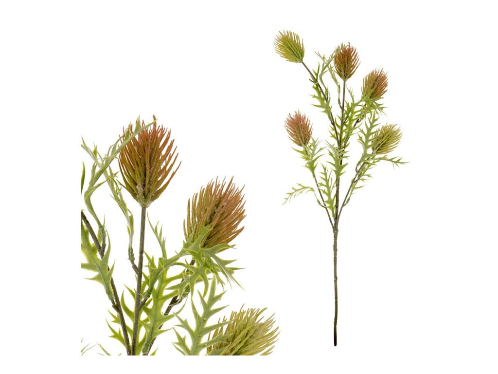 Umělá větev bodlák v zelené barvě je vhodná pro dekoraci interiéru i exteriéru. Odolná plastová konstrukce zajišťuje dlouhou životnost a snadnou údržbu.