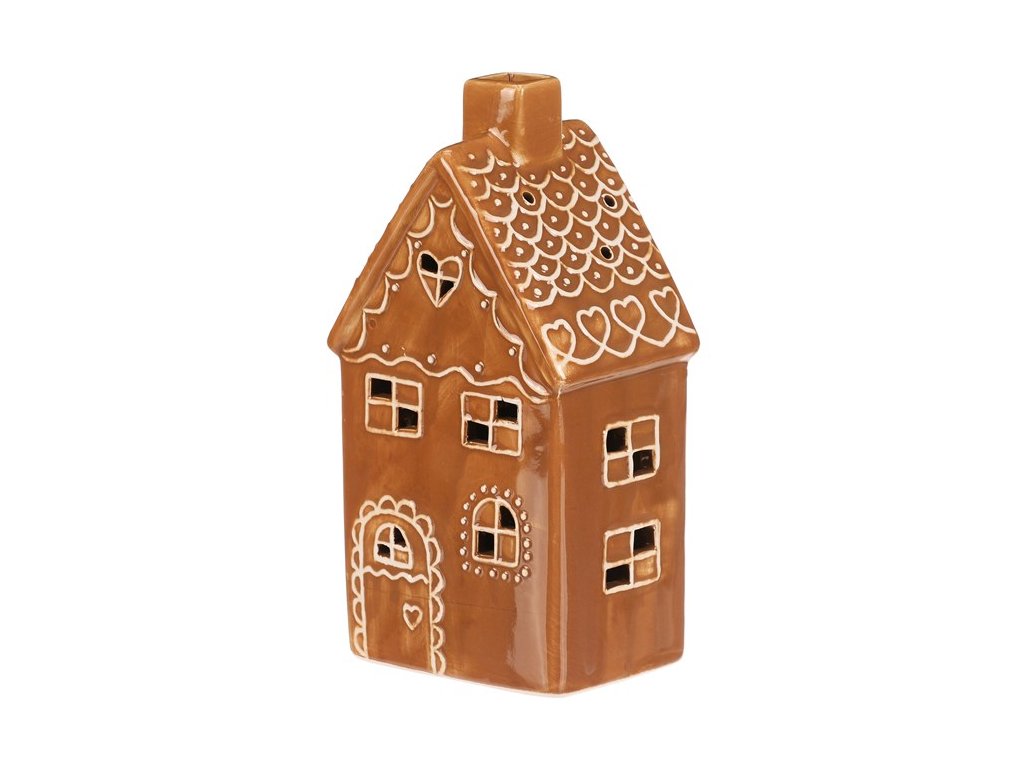 Domeček perníkový - keramika, patrový, LED osvětlení, hnědý