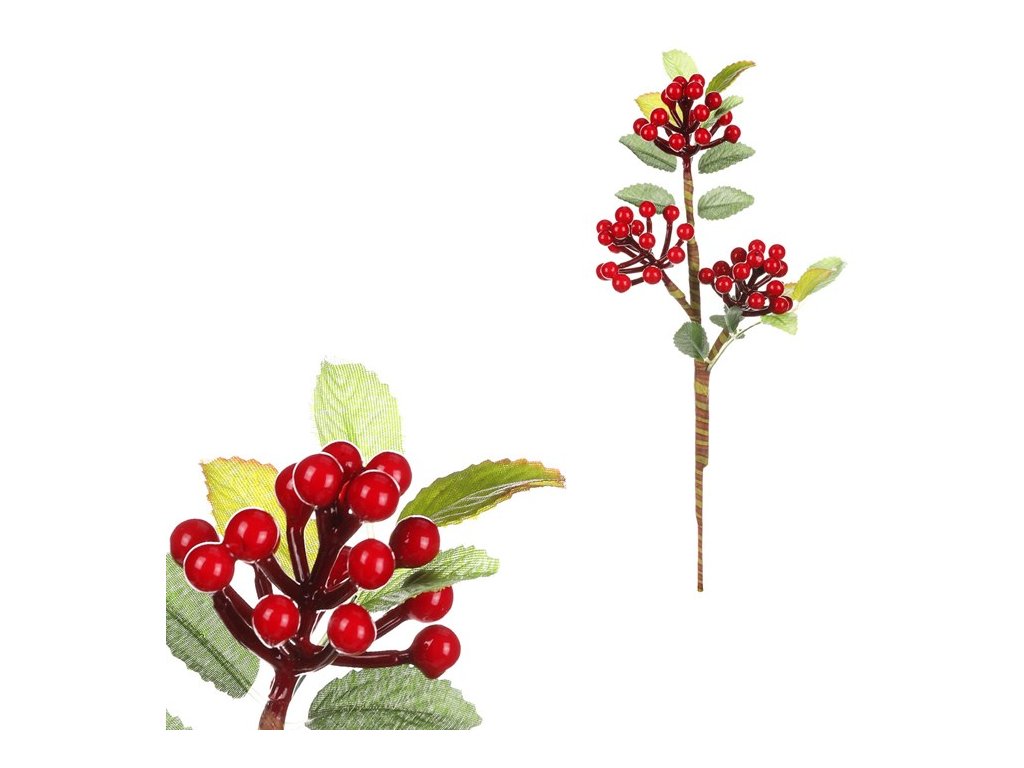 Umělá jeřabinová větev s červenými bobulemi dodá přírodní vzhled vašim dekoracím. Vypadá velmi věrně a vydrží dlouhodobě bez údržby.