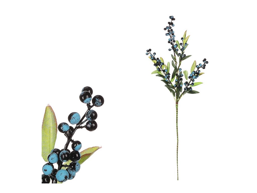 Větev jeřabiny s modře zbarvenými bobulemi přináší do interiéru přírodní vzhled bez nutnosti péče. Vhodná pro celoroční dekorace, zejména podzimní aranže.