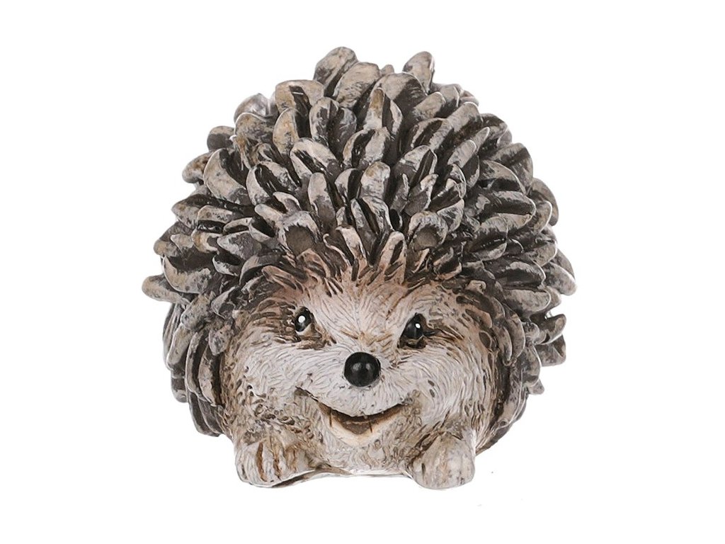 Figurka ježka z polyresinu v šedo-hnědém provedení je vhodná pro ozdobu zahrady, terasy i domácího interiéru. Odolný materiál zajišťuje dlouhou životnost i při venkovním použití.