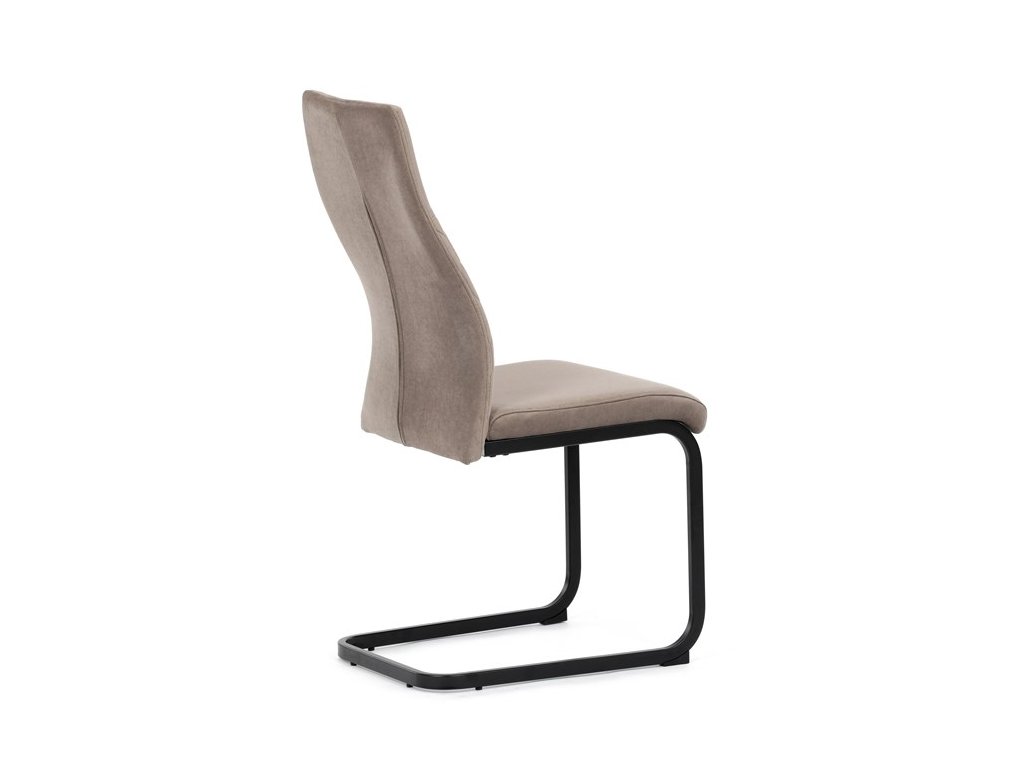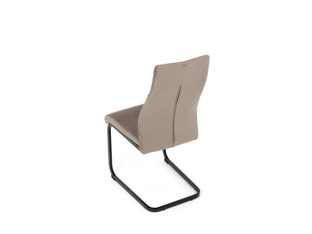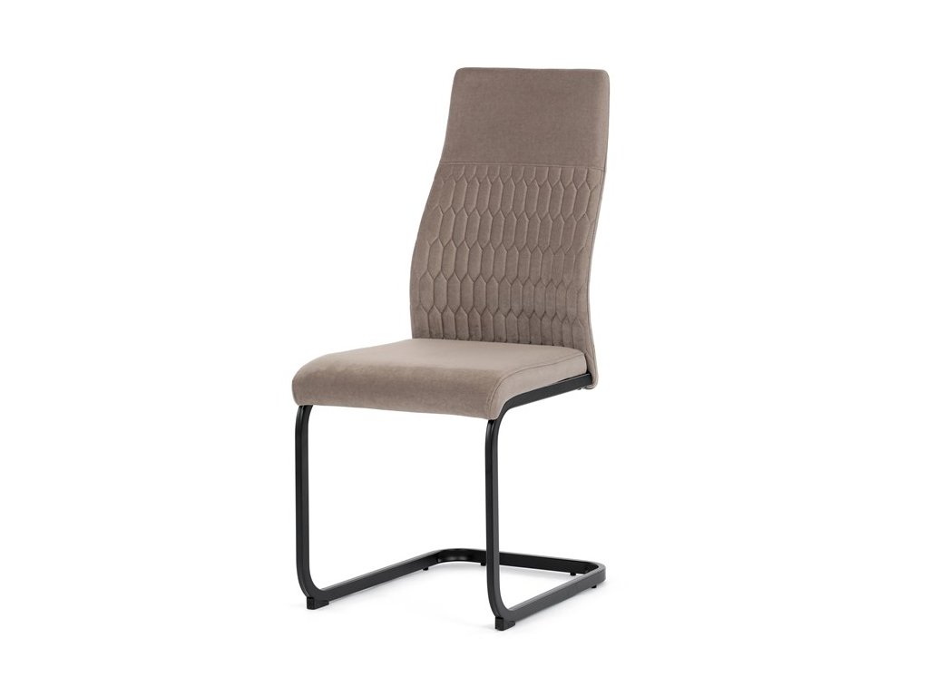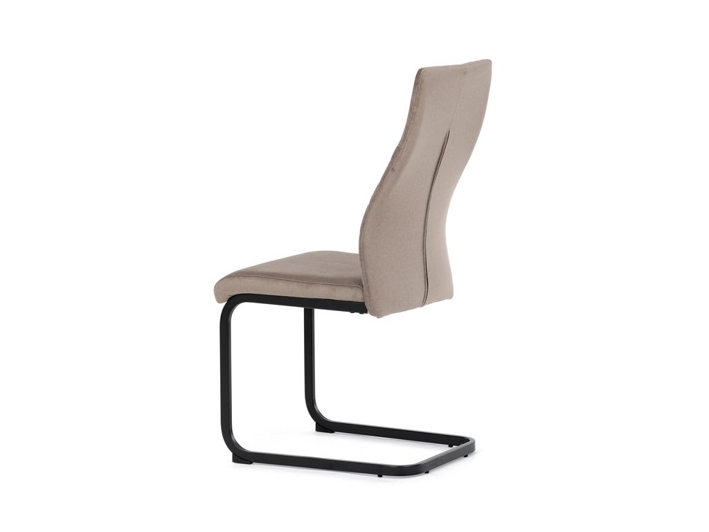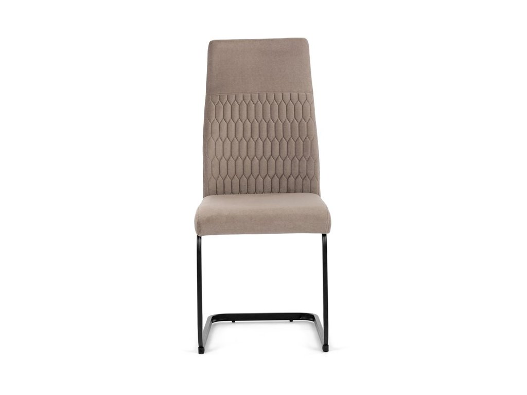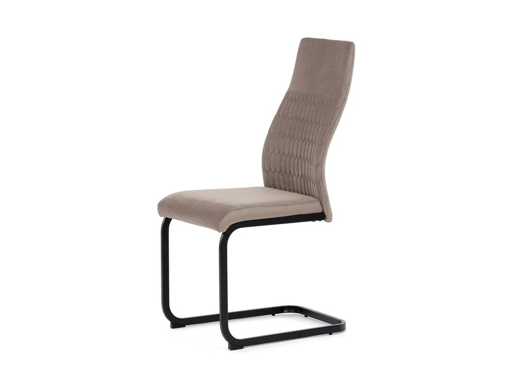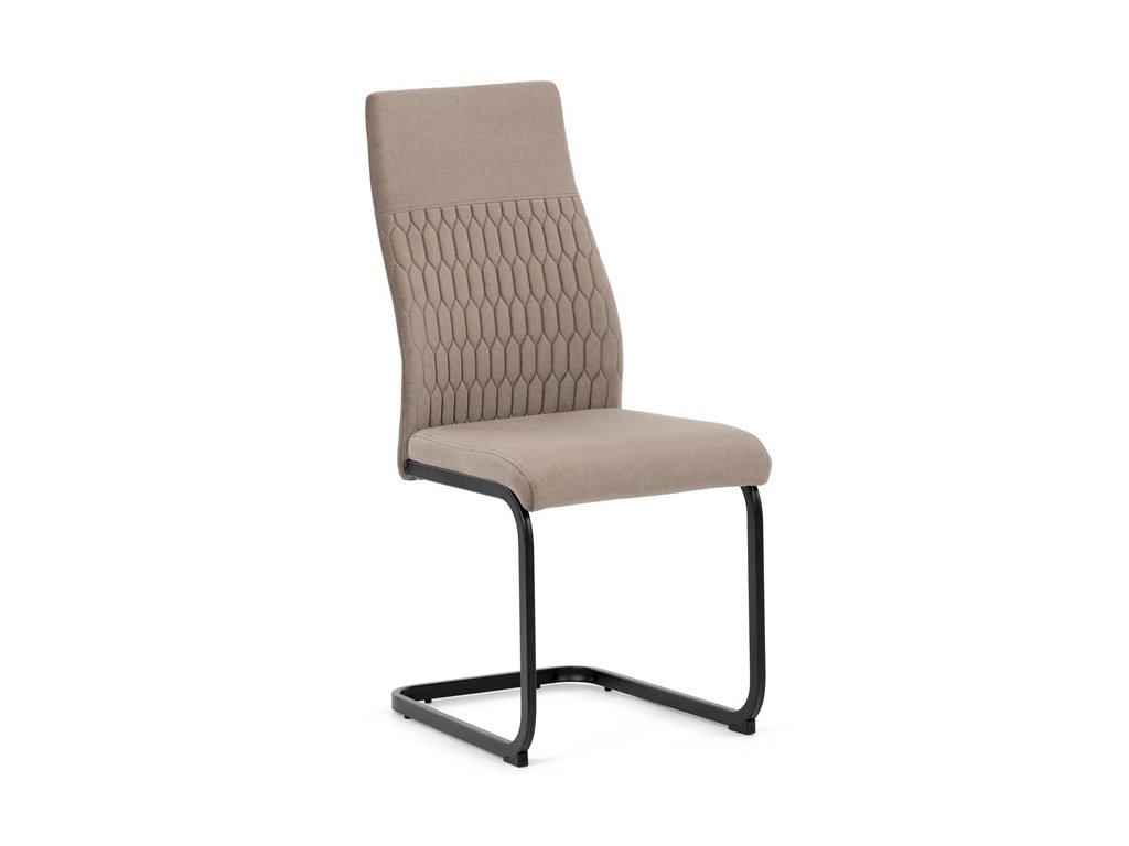 Čalouněná židle s látkou Cappucino a černými kovovými nohami je ideální do moderní jídelny. Poskytuje komfort a styl v jednom.