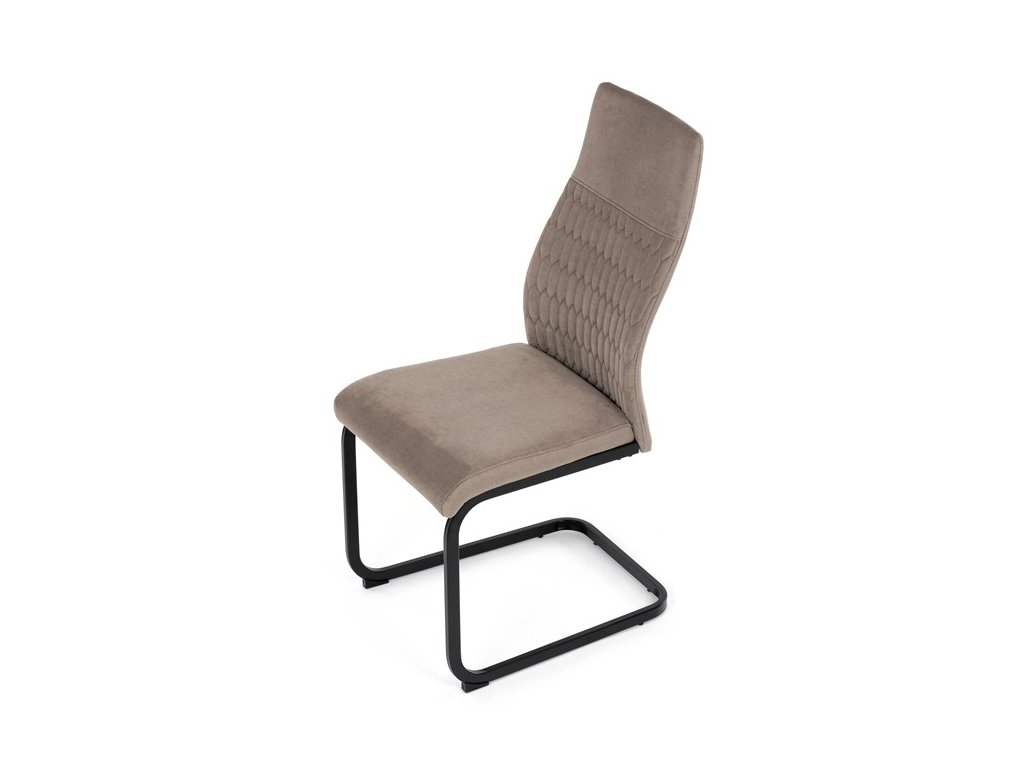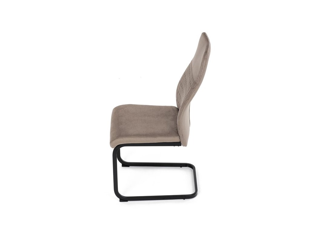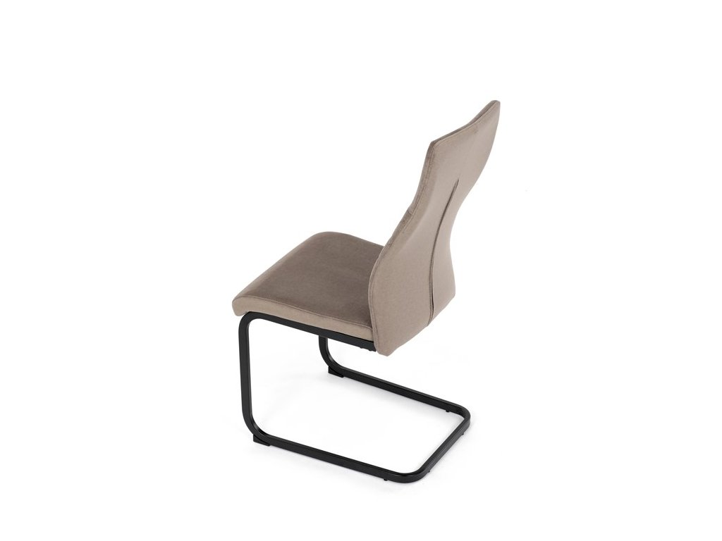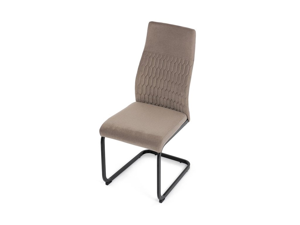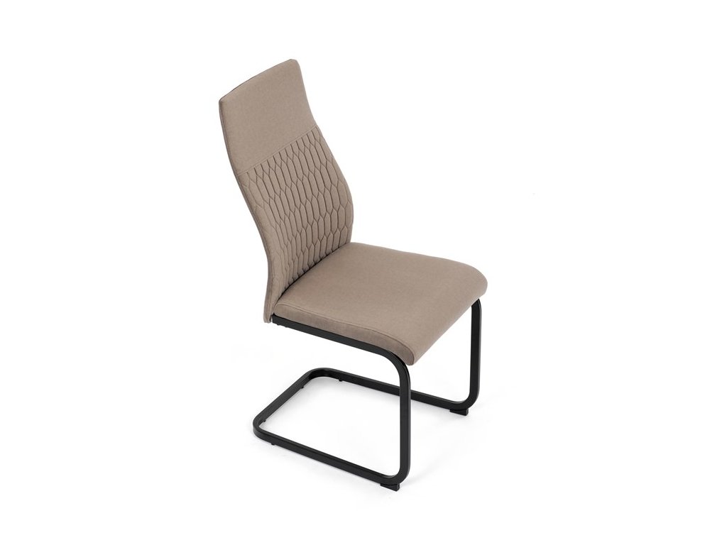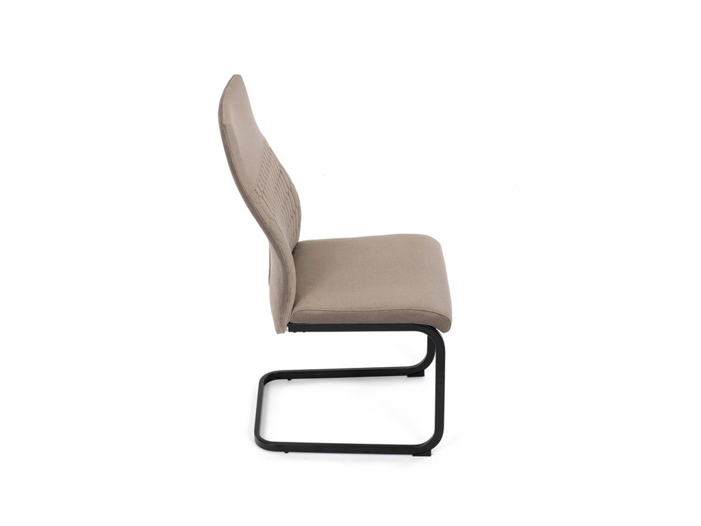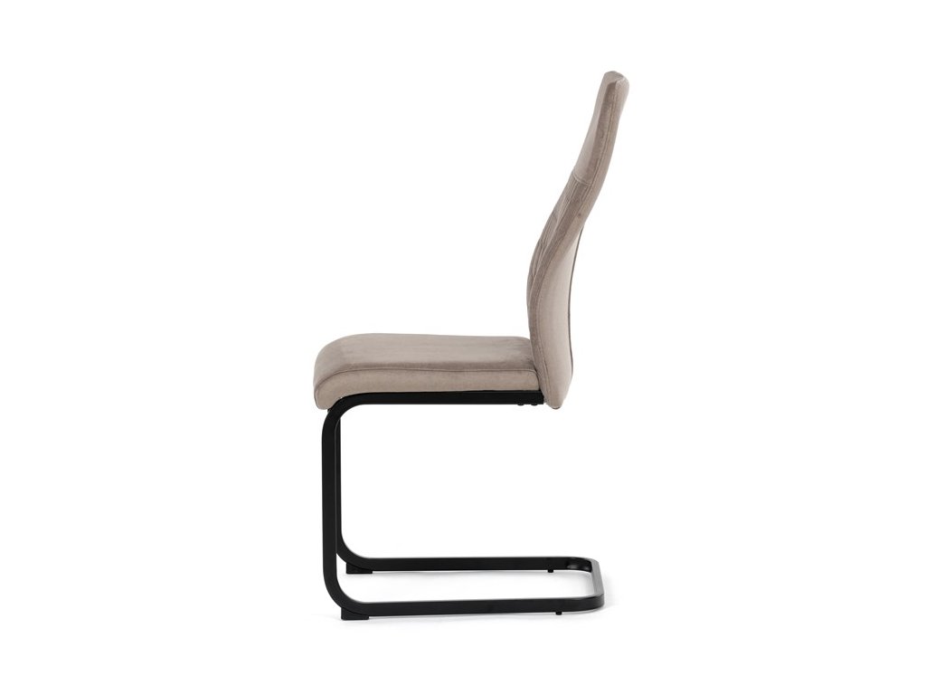 Čalouněná židle s látkou Cappucino a černými kovovými nohami je ideální do moderní jídelny. Poskytuje komfort a styl v jednom.