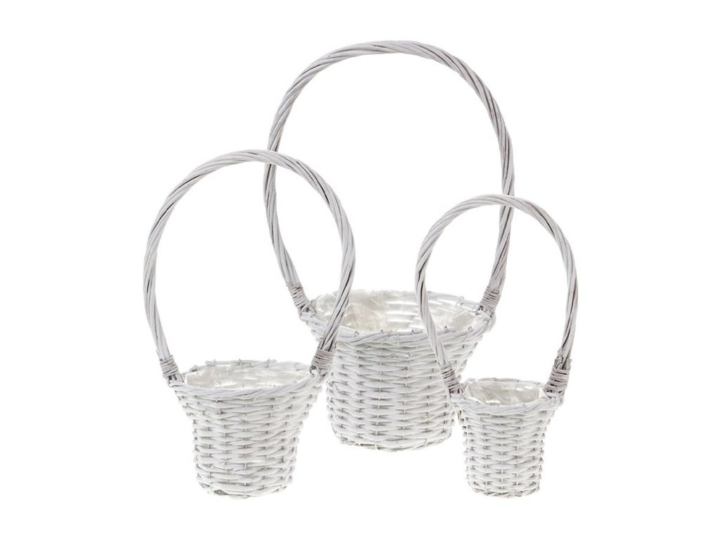 Košík dekorační proutěný s uchem a igelitem, sada 3 kusy , barva bílá