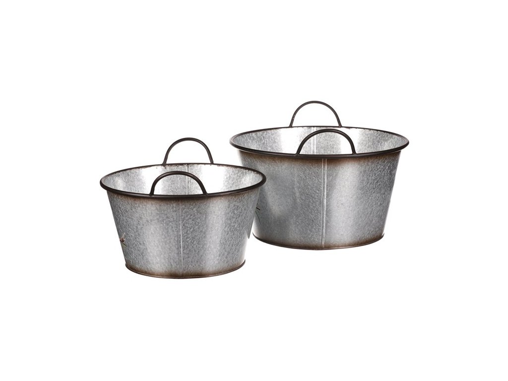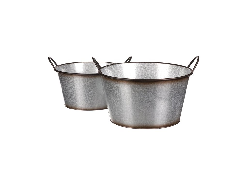 Sada obsahuje dva kovové obaly různých velikostí, které lze použít samostatně nebo jako součást dekorace. Vhodné pro květiny, sukulenty nebo bylinky.