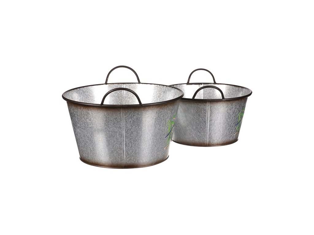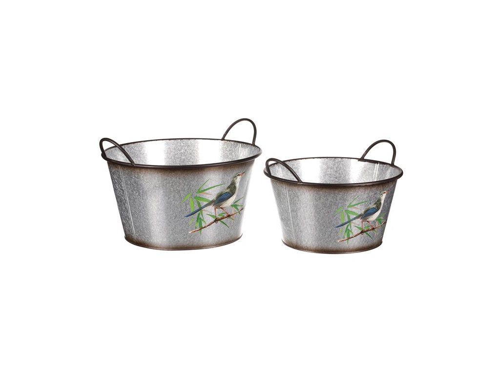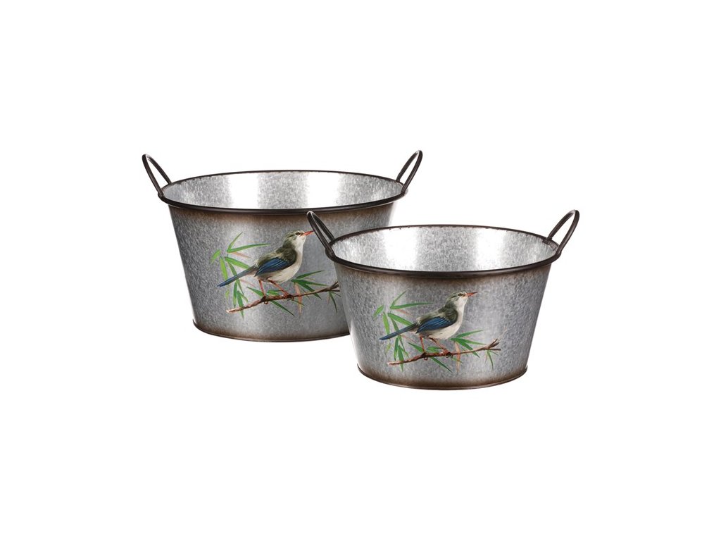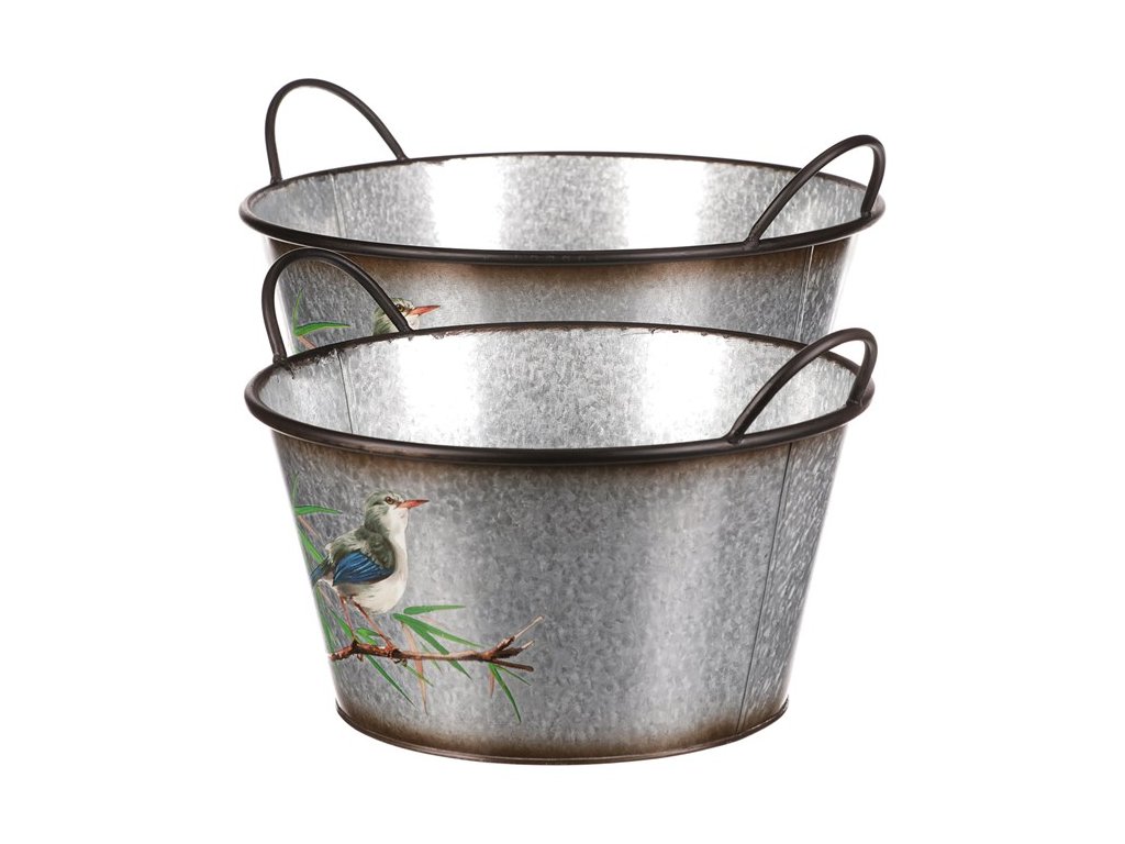 Kovový obal na květiny, sada 2ks, design s ptáčky.