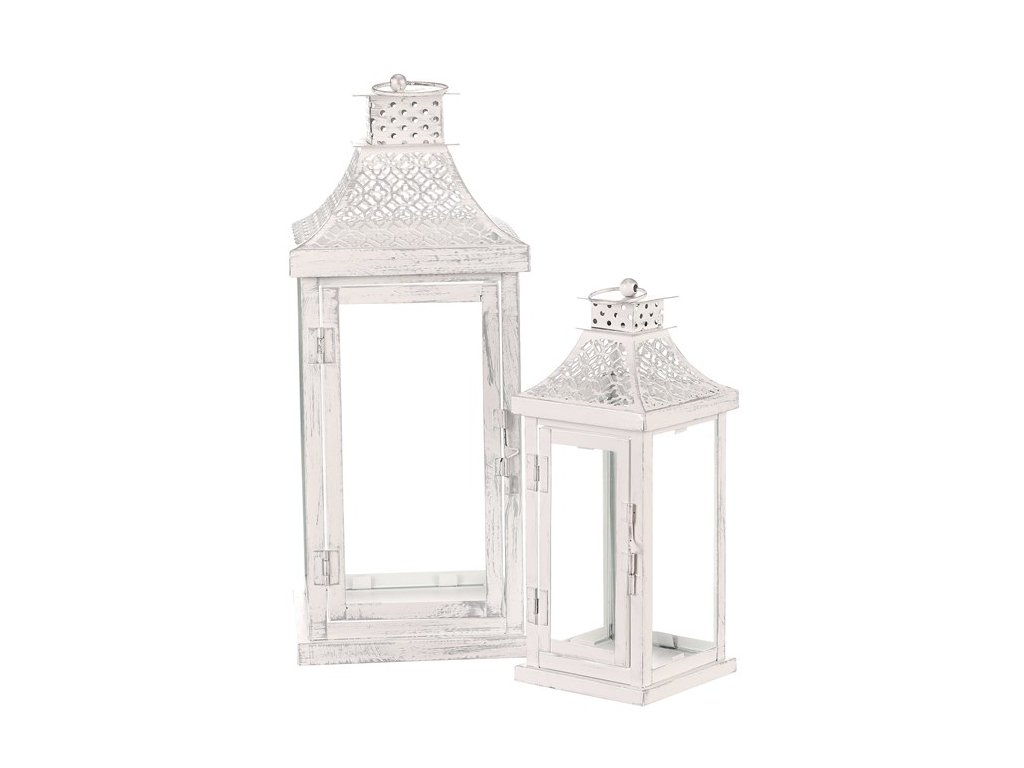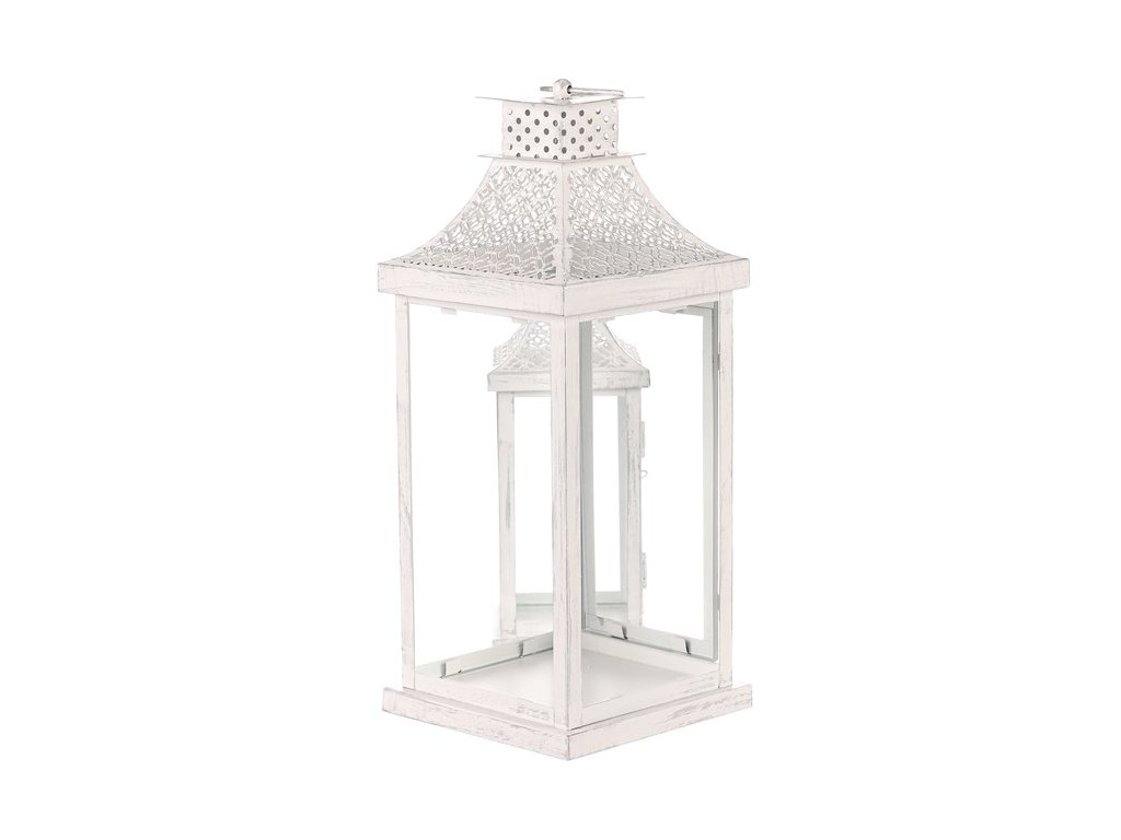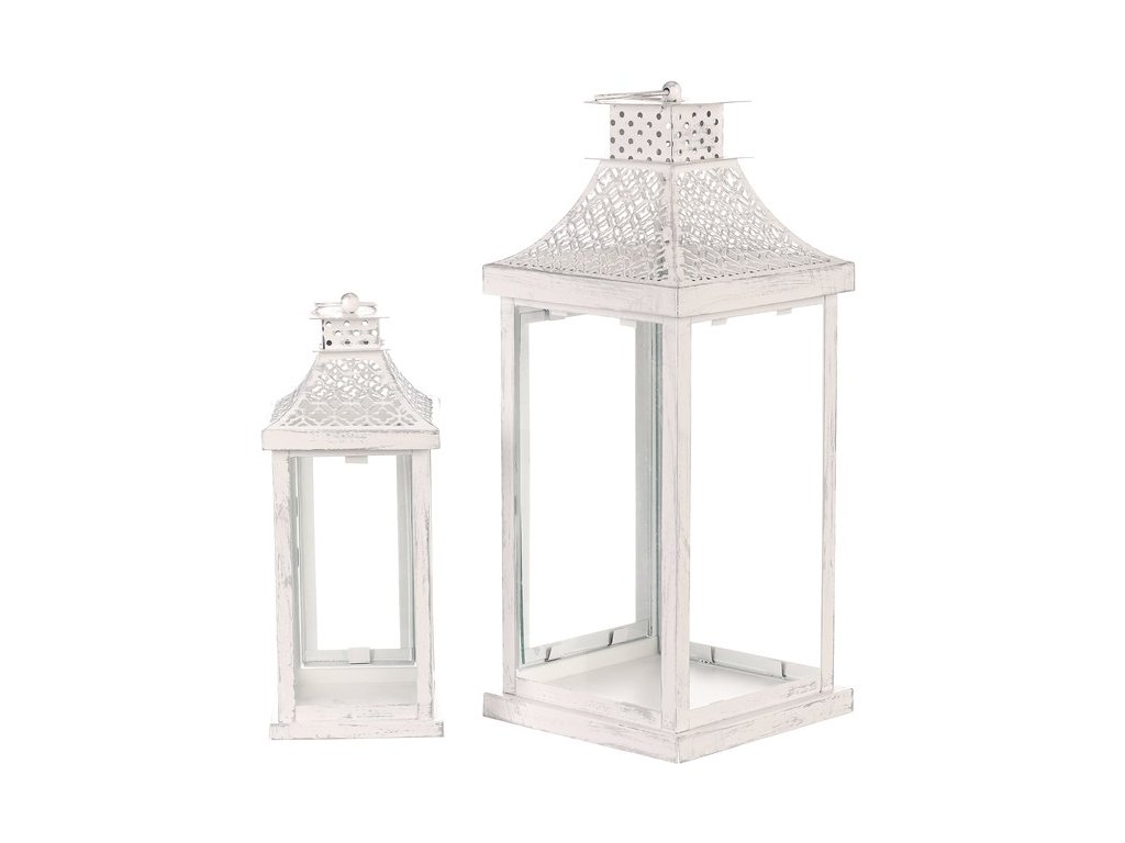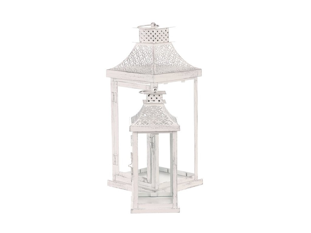 Lucerny jsou jako kouzelné láhve, uvnitř nichž tančí světlo, které se skrze okénka dere ven a vytváří tím neodolatelnou atmosféru. Tato čtyřboká kovová lucerna v bílém dekoru a v sadě dvou velikostí, nechť je tomu důkazem. Elegantní design a precizní zpracování jemných detailů, zvýrazňují její ozdobnou roli. Ať už visí ve vzduchu jako historická lampa nebo stojí na zemi jako posvátná socha, její světelný efekt zahaluje prostor do něžného závoje, přinášející pohodu a klid.Doplňkové parametry