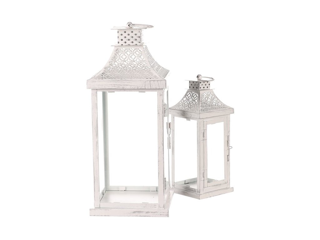 Lucerna kovová - čtyřboká, bílá, cena za sadu 2 ks