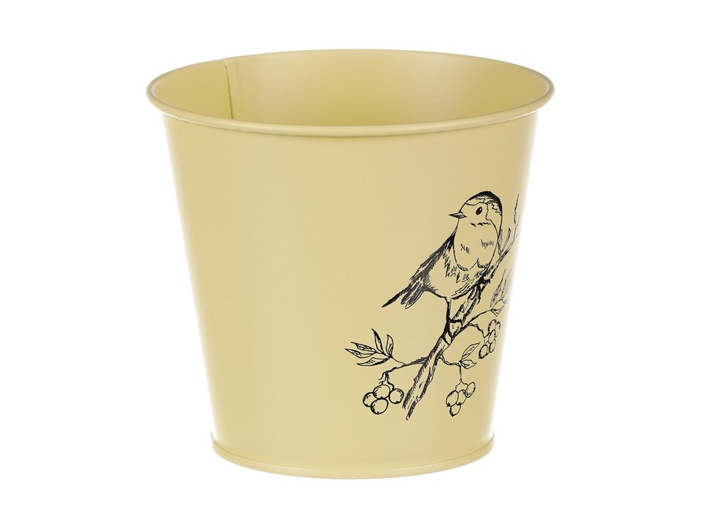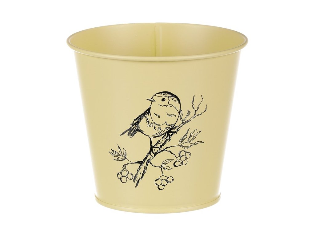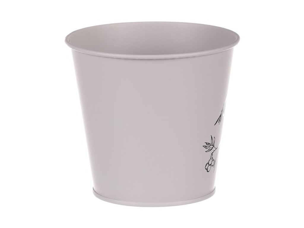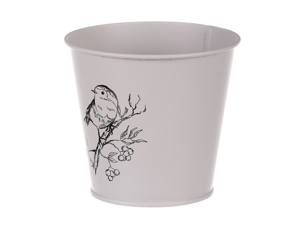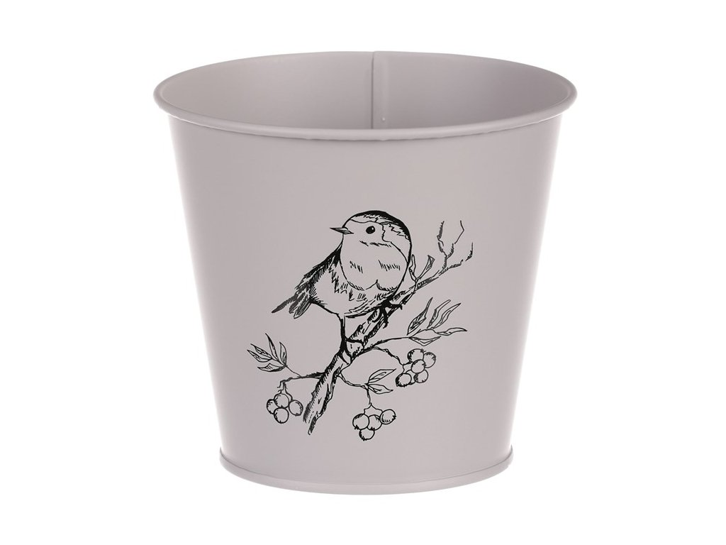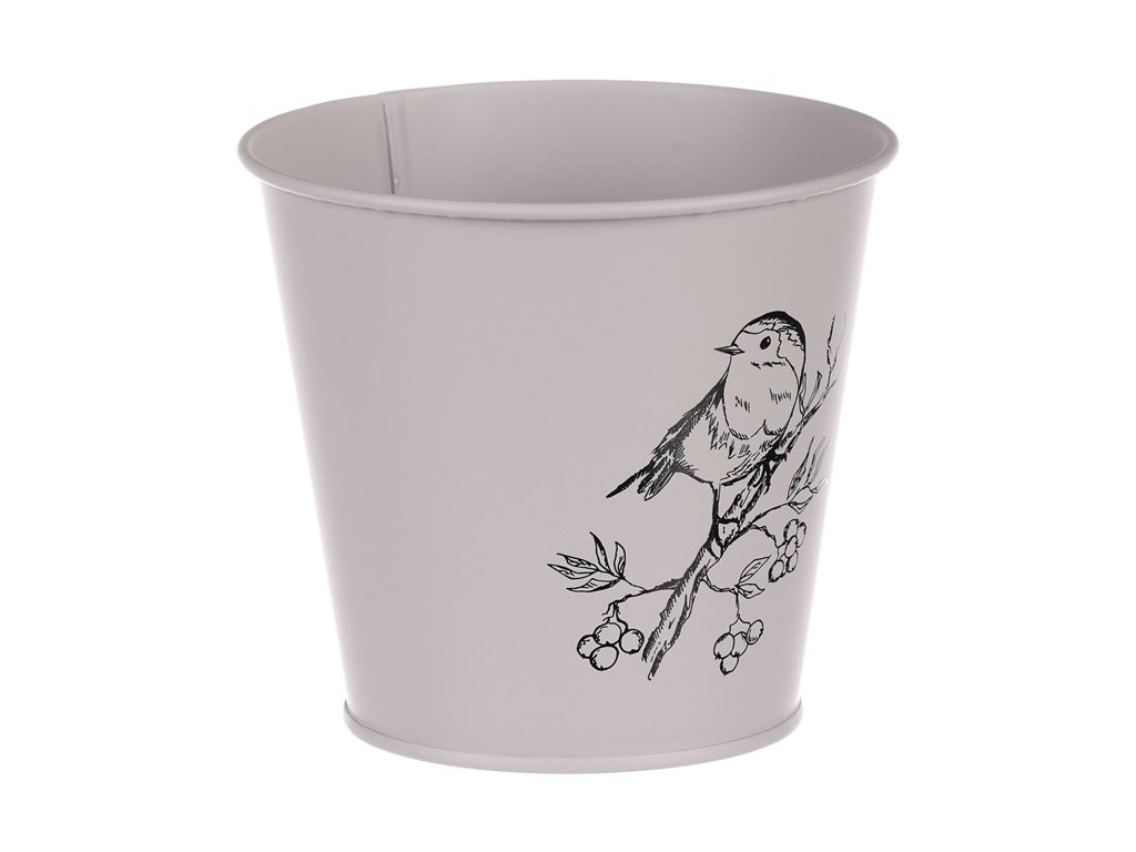 Kovový obal s motivem ptáčka v šedé barvě zvýrazní vaše rostliny a ochrání je před vnějšími vlivy. Ideální pro vnitřní i venkovní použití.