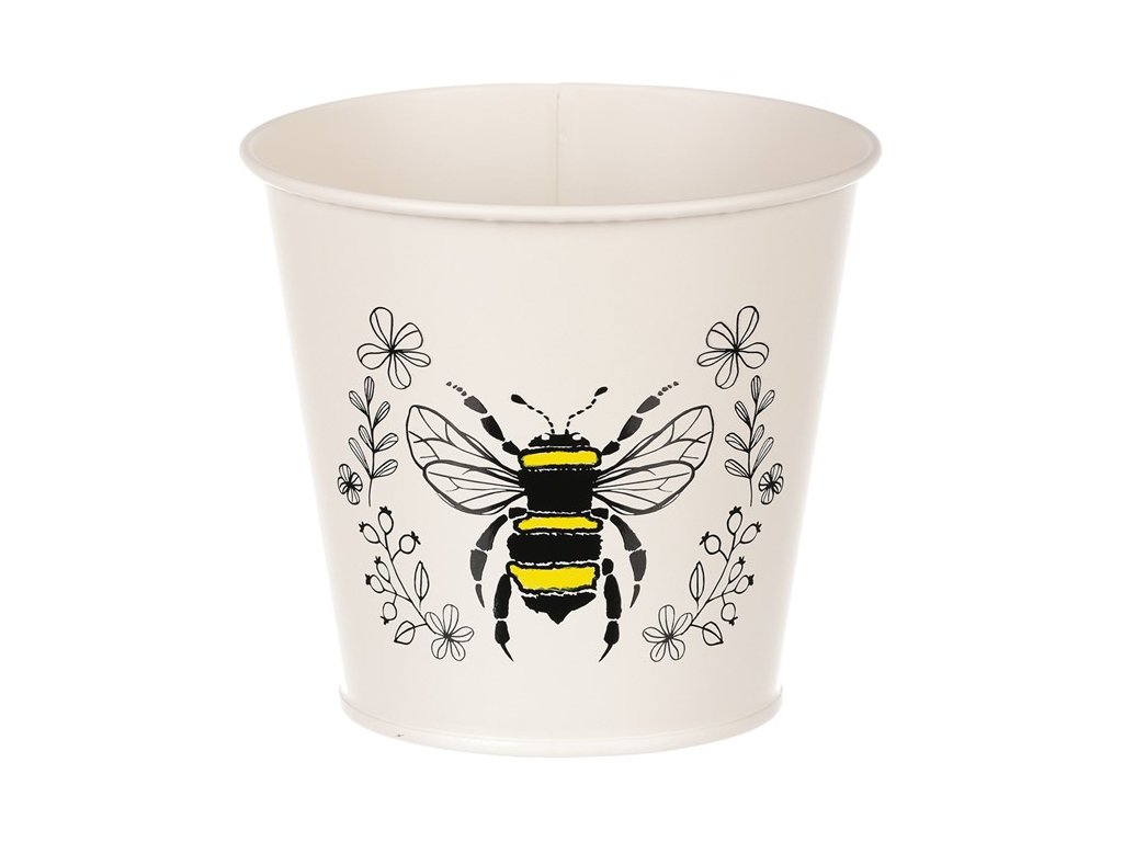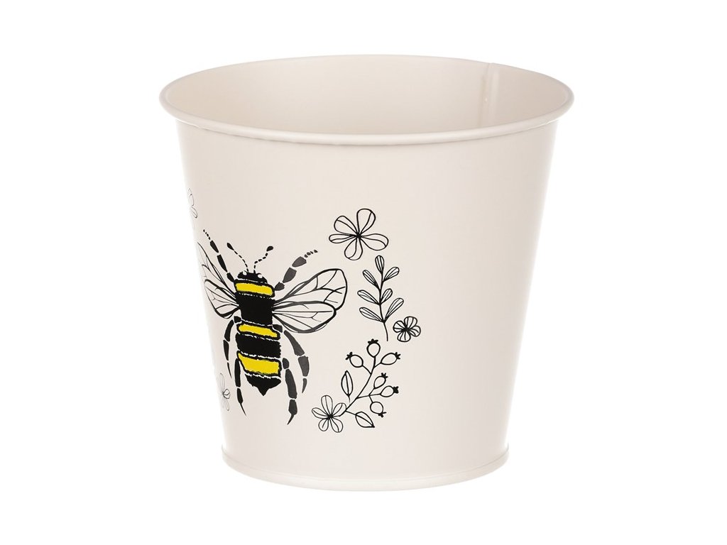 Kovový obal v krémové barvě s motivem včelky je ideální pro ozvláštnění vašeho prostoru. Vhodný pro umístění květin nebo rostlin, dodá prostoru originální vzhled.