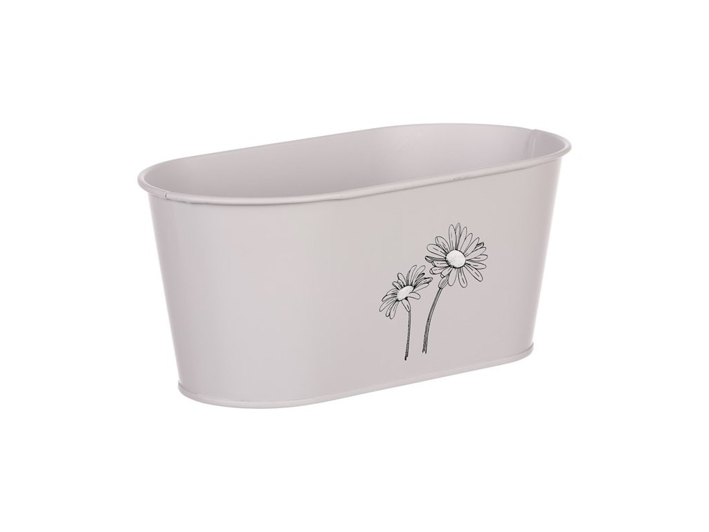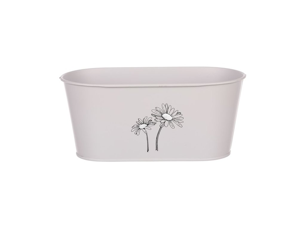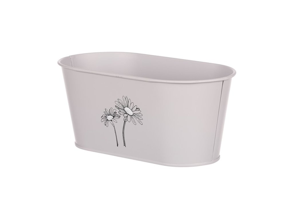 Obal kovový - truhlík s kopretinami, barva šedá