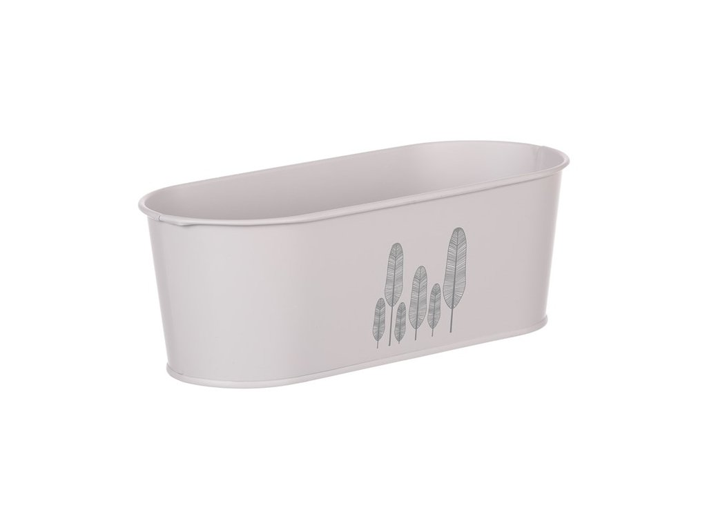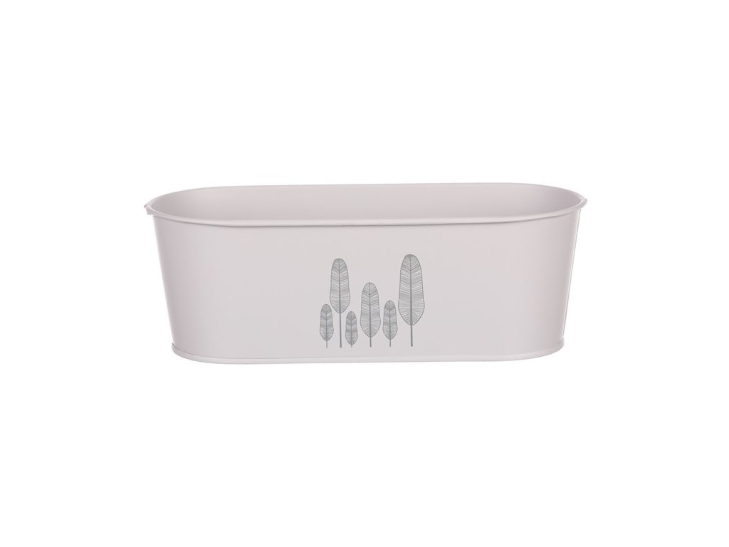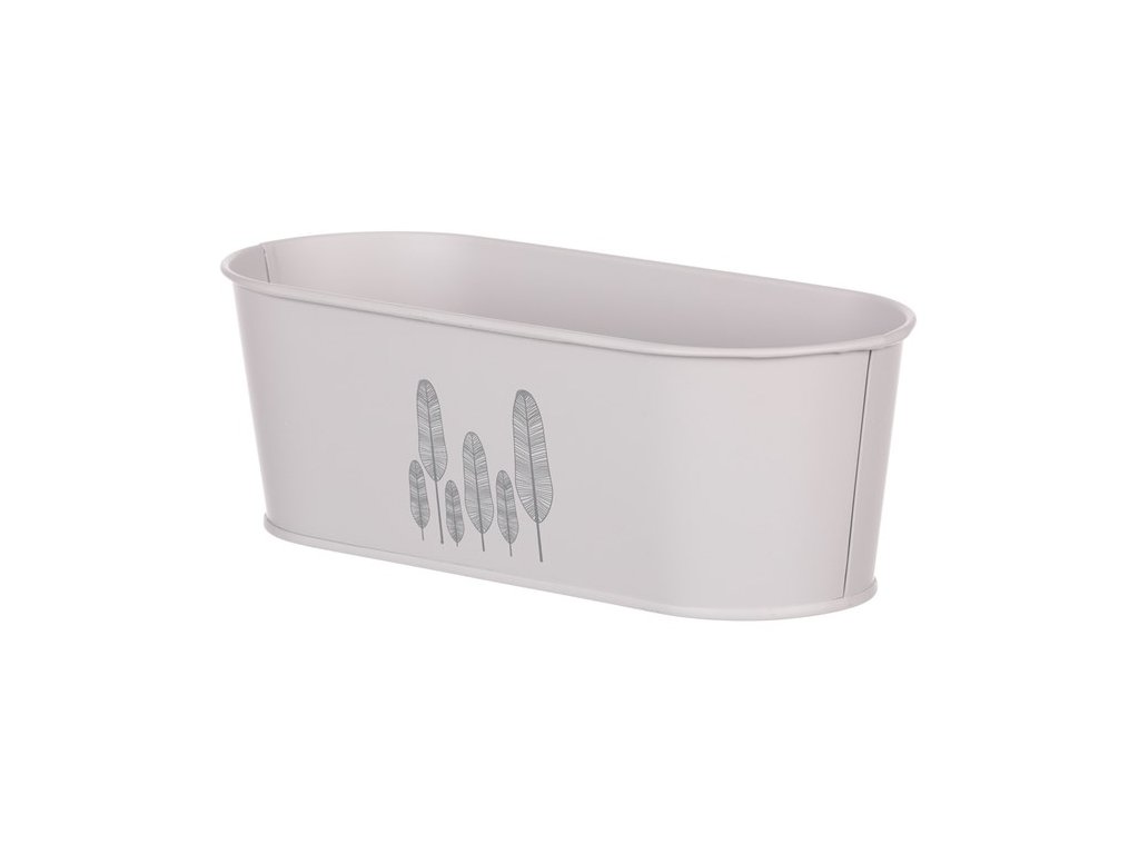 Kovový truhlík s motivy ptačích per v šedé barvě je ideální pro ozvláštnění interiéru či exteriéru. Vhodný pro umístění květin, bylinek nebo malých rostlin.