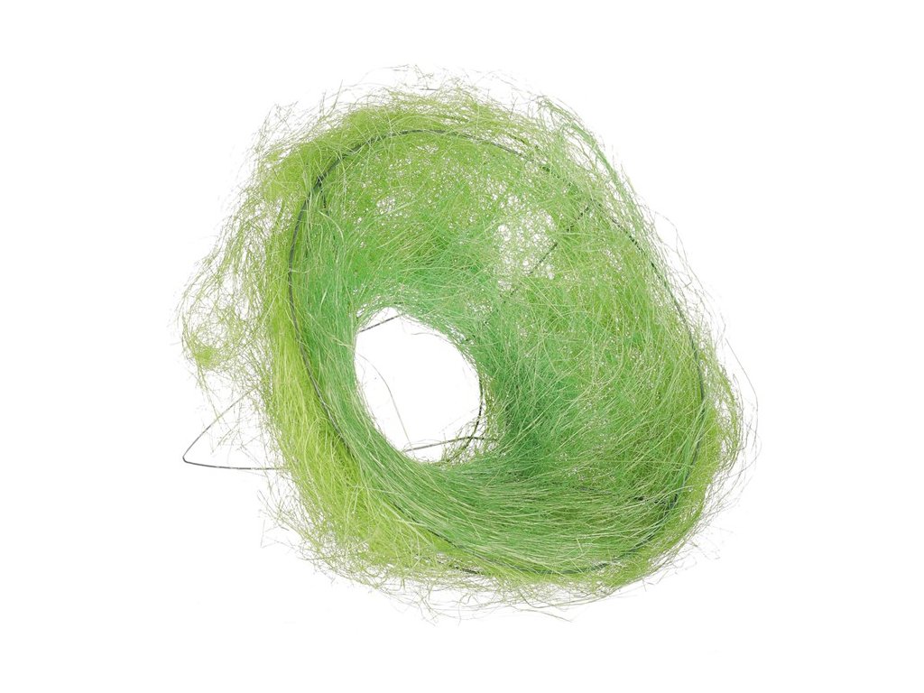 Vyrobena z přírodního sisálu s drátkovým rámem, který umožňuje flexibilní tvarování. Barva je zelená, vhodná pro přírodní a rustikální dekorace.