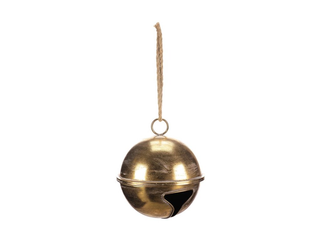 Závěsná kovová rolnička ve zlaté barvě zaujme už na první pohled. Má totiž obří průměr 26 cm. Visí na provázku a nejlépe vynikne jako solitérní ozdoba na stěně nebo okně, případně může být použita na vzrostlý, venkovní strom. Na klasický vánoční stromeček se nehodí, neboť její váha by mohla polámat drobné větvičky. Ideální je pro ty, kteří chtějí dodat svátečnímu prostoru dominantní prvek.Doplňkové parametry