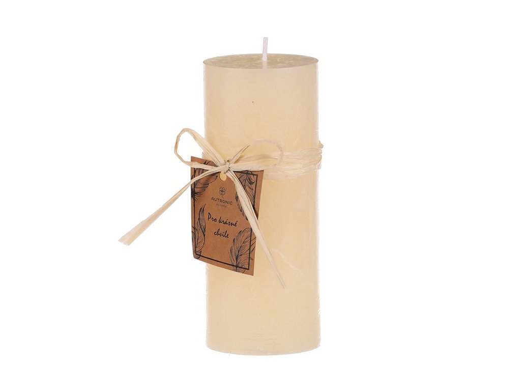 Vysoká krémová svíčka válcovitého tvaru přináší do každého prostoru nejen neodolatelné světlo, ale i jedinečnou atmosféru klidu a elegance. Její bezvonný stoprocentní parafín a jeho množství zaručuje dlouhou dobu hoření, což z ní činí ideálního společníka pro krásné chvíle relaxace a romantiky. Ideální je pro lidi, kteří nesnesou aromatizované produkty, případně jsou na ně alergičtí. S jednobarevným čistým provedením, které je doplněno mašličkou v podobném odstínu, bude hezkým dárkem, a zdrojem nezapomenutelných okamžiků. Při pohledu na plápolající plamen, si snadno zdokonalíte vaše romantické večery a učiníte je ještě krásnějšími.