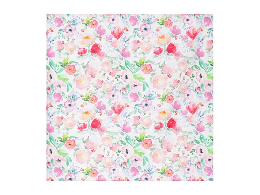 Ubrus, pivoňky v růžových barvách, 80x80cm, 100% polyester.