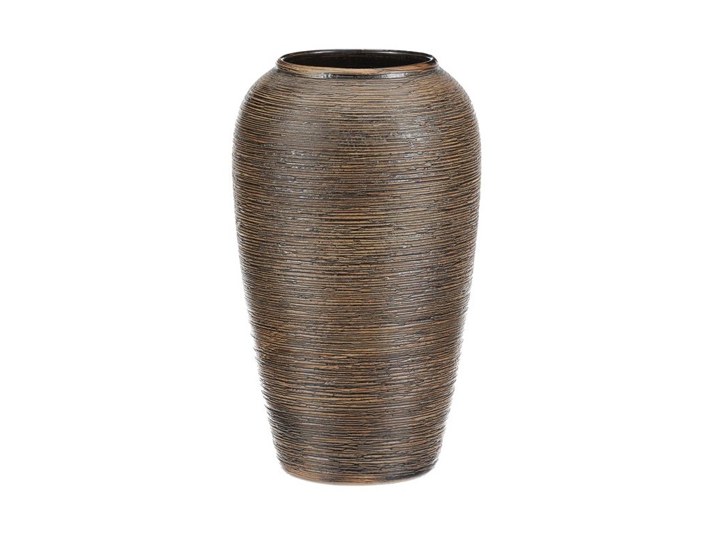 Keramická váza o výšce 26 cm zaujme zaobleným tvarem a hnědým povrchem s vodorovnými rýhami, které jí dodávají starobylý vzhled. Jako by ji právě vykopali samotní archeologové! Skvěle doplní váš interiér a nechá zasazené rostliny nádherně vyniknout.Doplňkové parametry