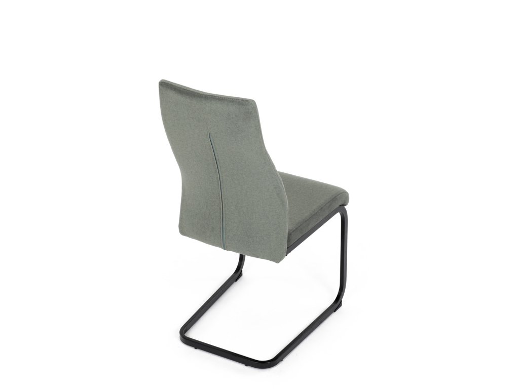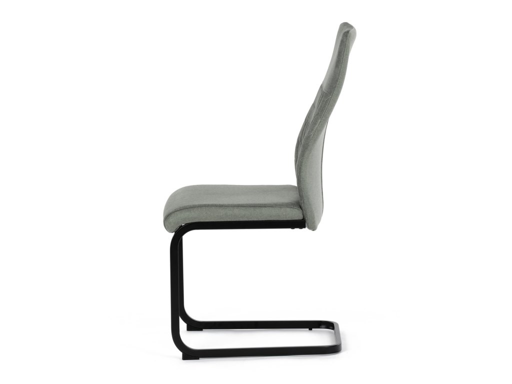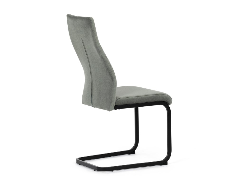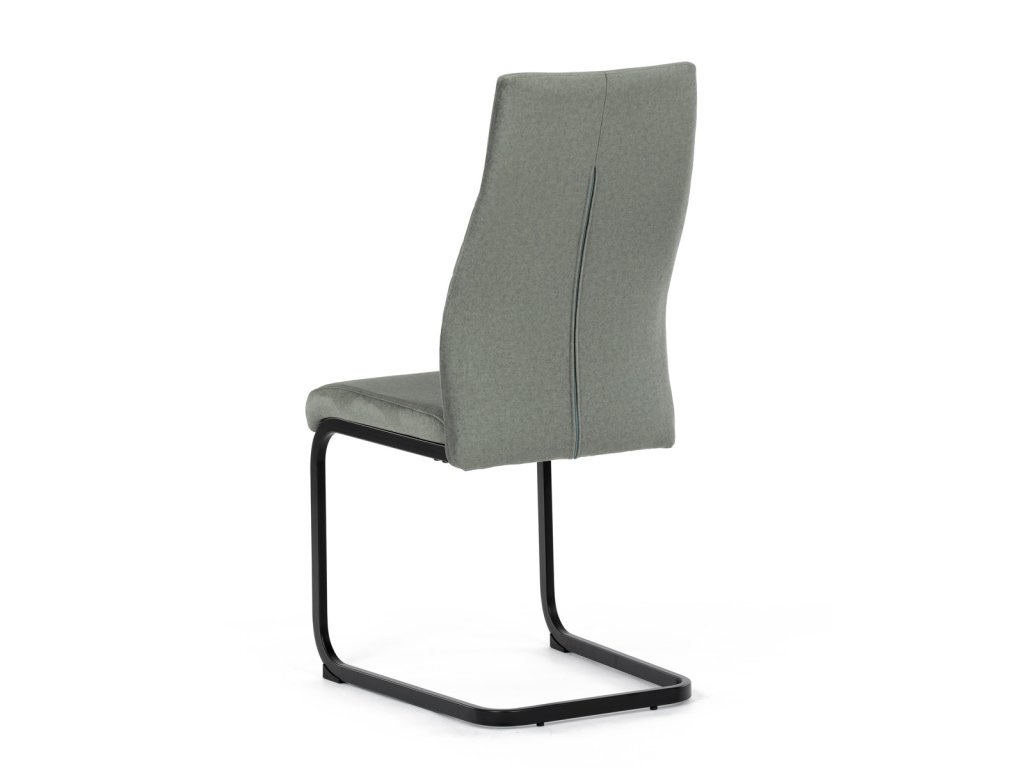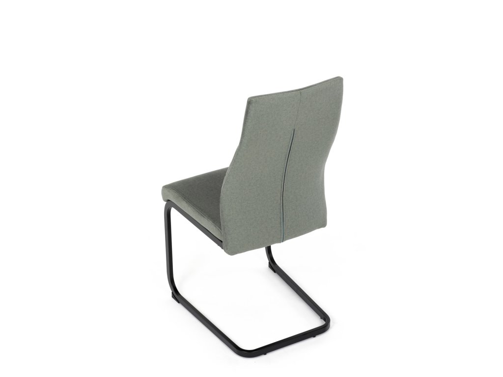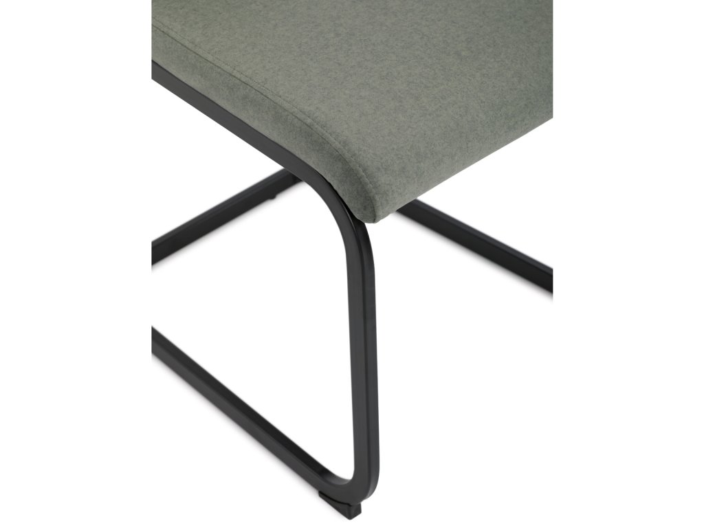 Židle s čalouněním z látky v zelené barvě a černými kovovými nohami je ideální do moderní jídelny. Poskytuje komfort a stylové doplnění vašeho prostoru.