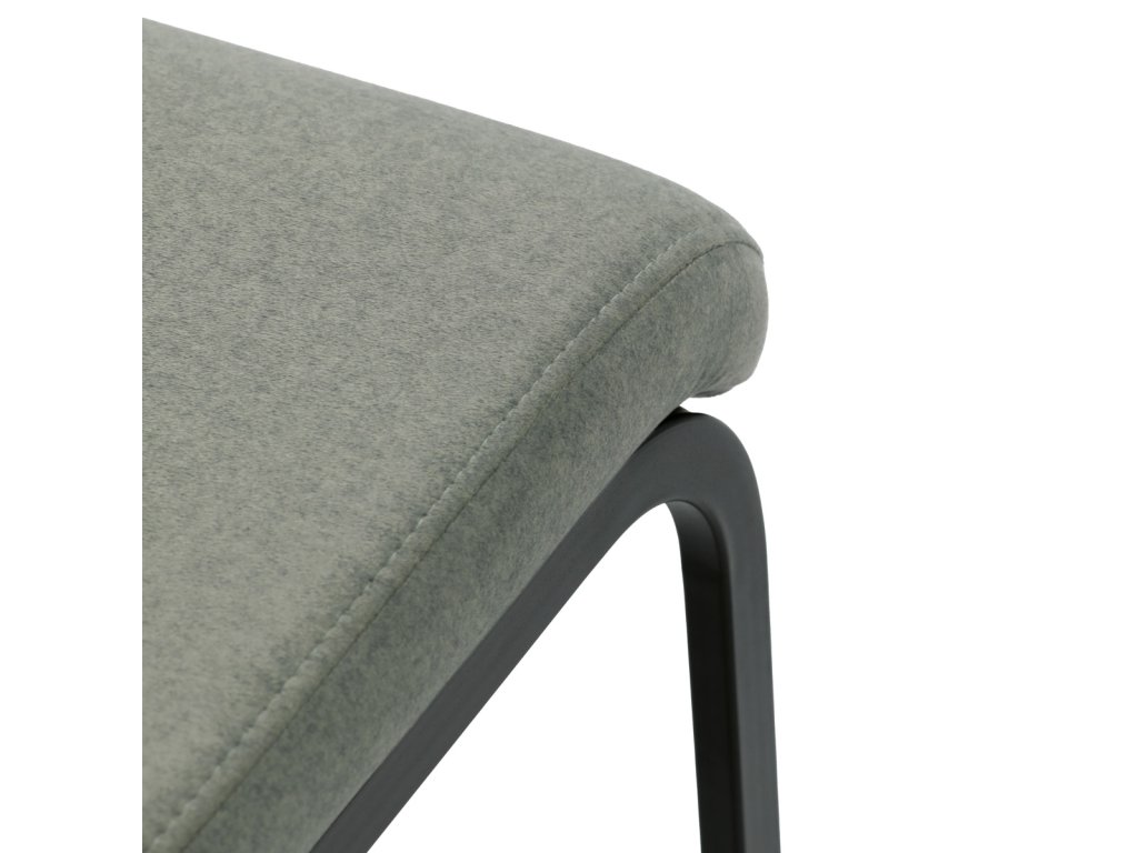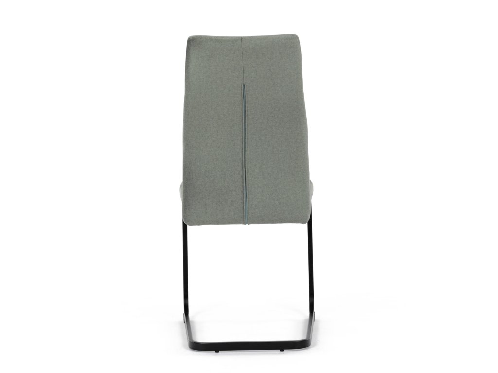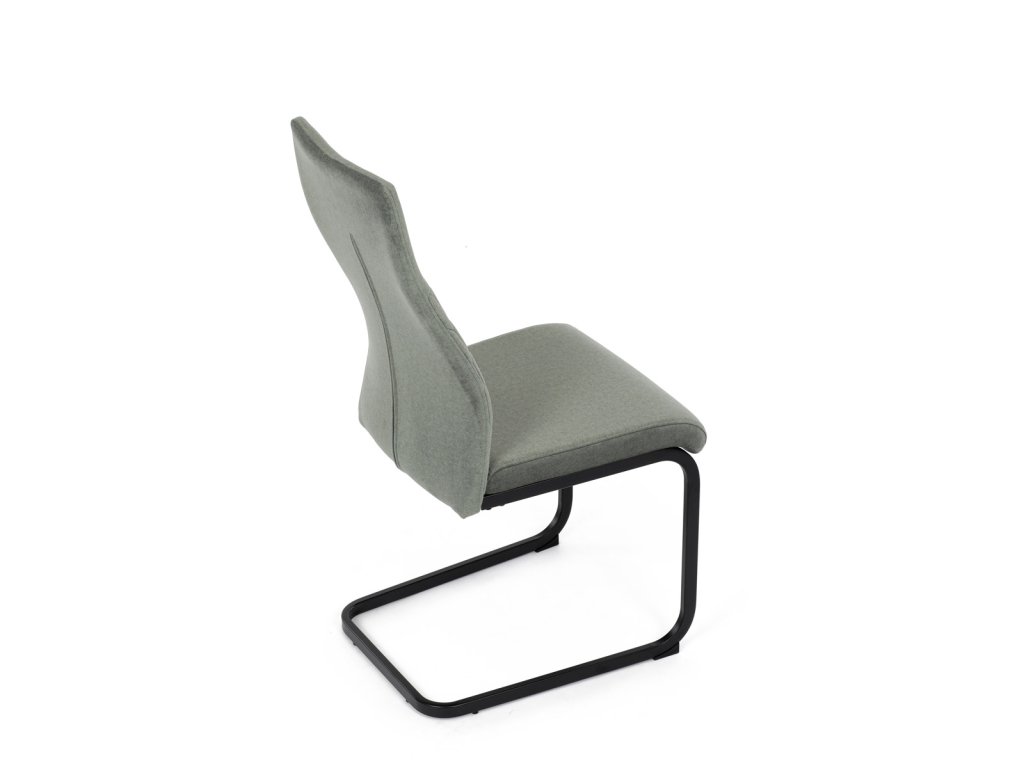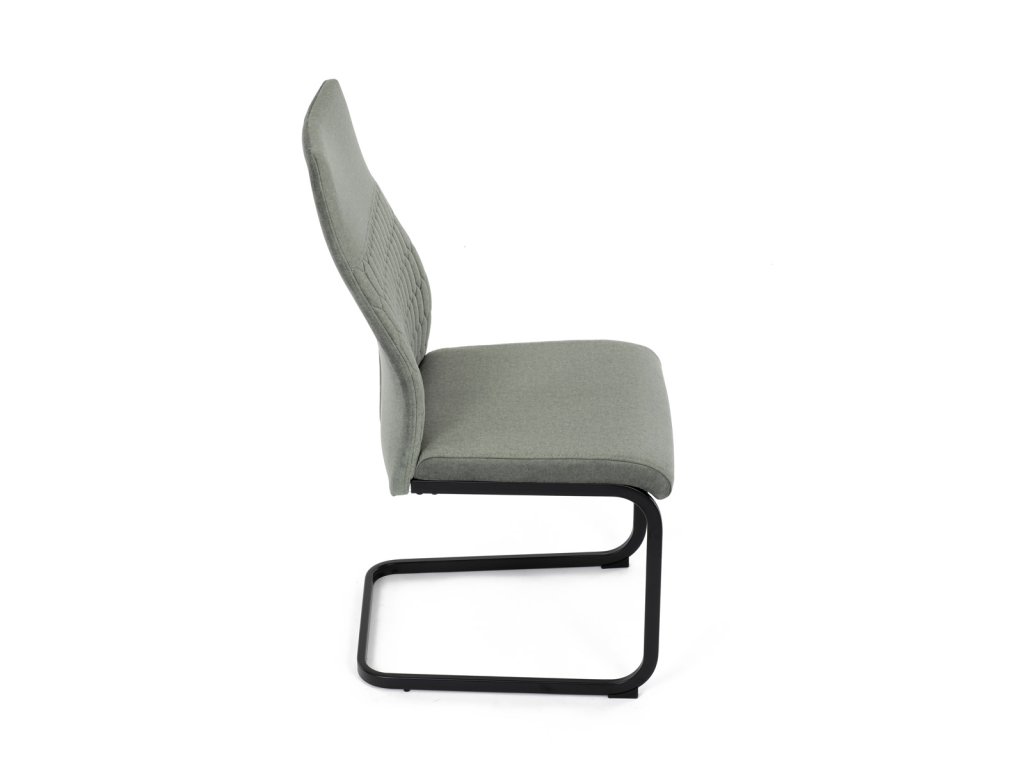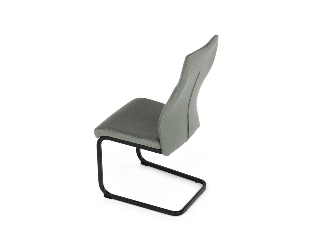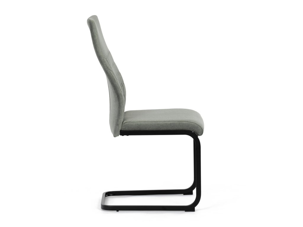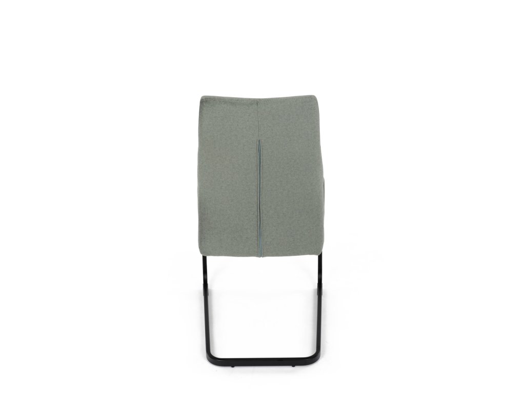 Židle s čalouněním z látky v zelené barvě a černými kovovými nohami je ideální do moderní jídelny. Poskytuje komfort a stylové doplnění vašeho prostoru.