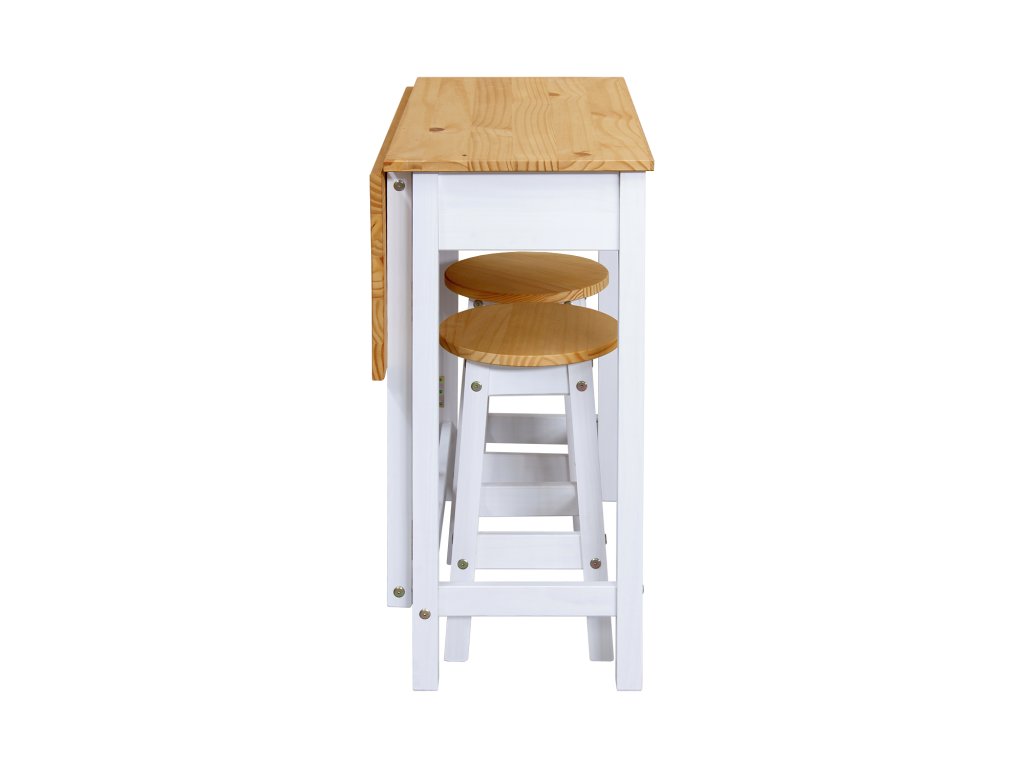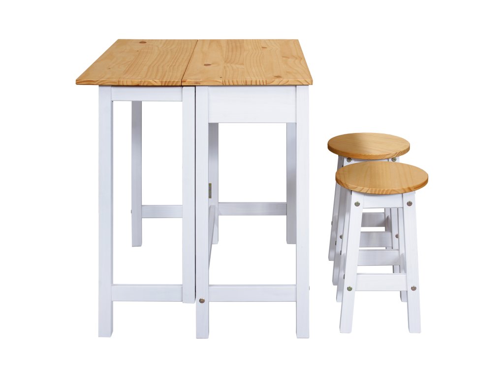 Barová sestava TAPAS je ideální pro domácí bary nebo menší prostory. Skládací konstrukce umožňuje snadné skladování a přenášení, zatímco masivní borovicový materiál zajišťuje pevnost a odolnost.