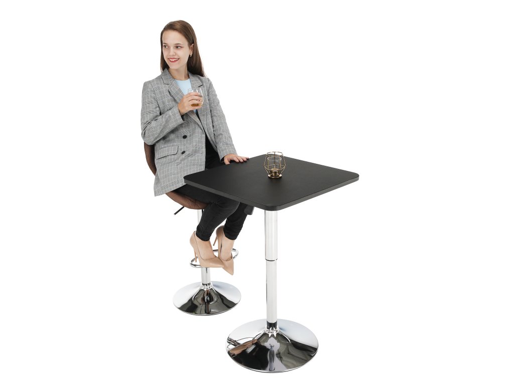 Vyroben z MDF desky a chromovaného kovu, stůl nabízí pevnou a stabilní plochu vhodnou pro domácí bar, kancelář nebo kavárnu.