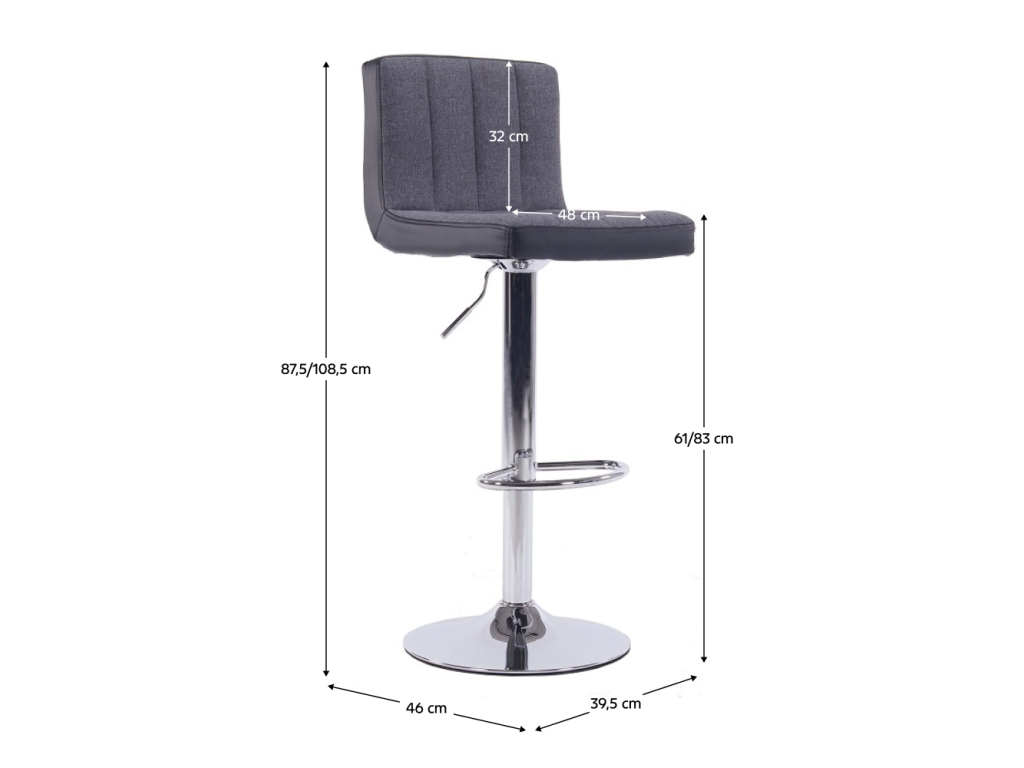 Barová židle HILDA nabízí výškově nastavitelný otočný sedák, který umožňuje přizpůsobení výšky sezení. Kombinace šedé látky a černé ekokůže zajišťuje komfort i odolnost při každodenním používání.