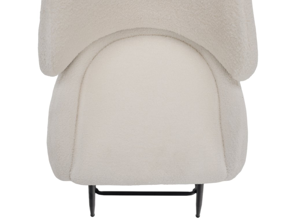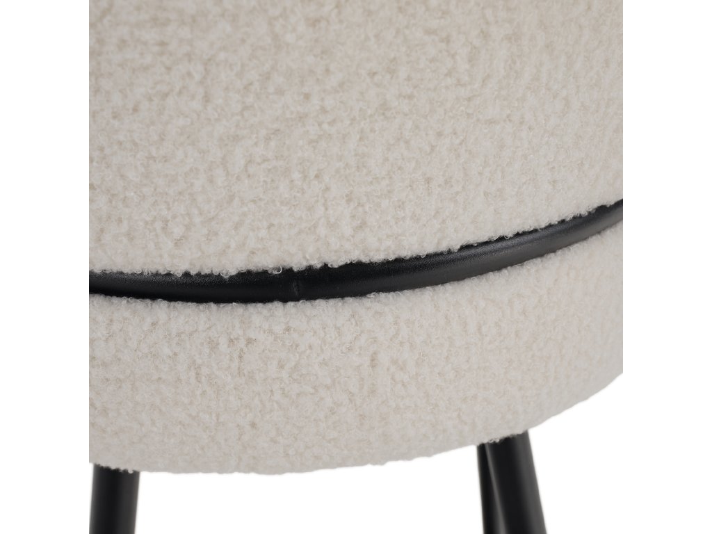 Polstrované sedadlo s látkou Bouclé je odolné vůči oděru a snadno se čistí. Výška sedu 67 cm umožňuje komfortní posezení u vyšších stolů.