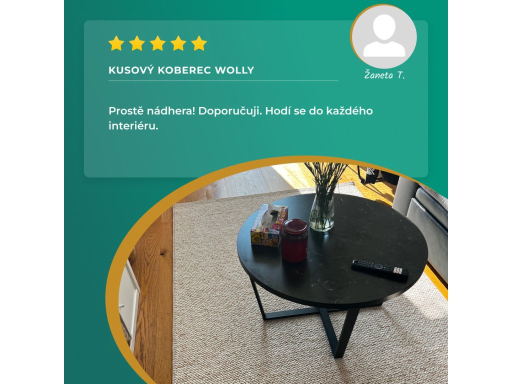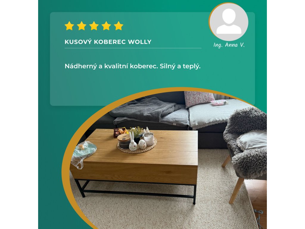 Koberec Wolly 102840 je vyroben ze syntetického materiálu se vzhledem vlny. Má perfektní vlastnosti jako je pevnost, pružnost, odolnost. Je velice jemný na dotek, má 12 mm dlouhý vlas. U tohoto koberce oceníte jednoduché barevné provedení, které zkombinujete s každým interiérem. Podívejte se na ekvivalentní koberce Casablanca v metrážové verzi nebo pratelné a recyklovatelné bratrance Tundra.BT Carpet