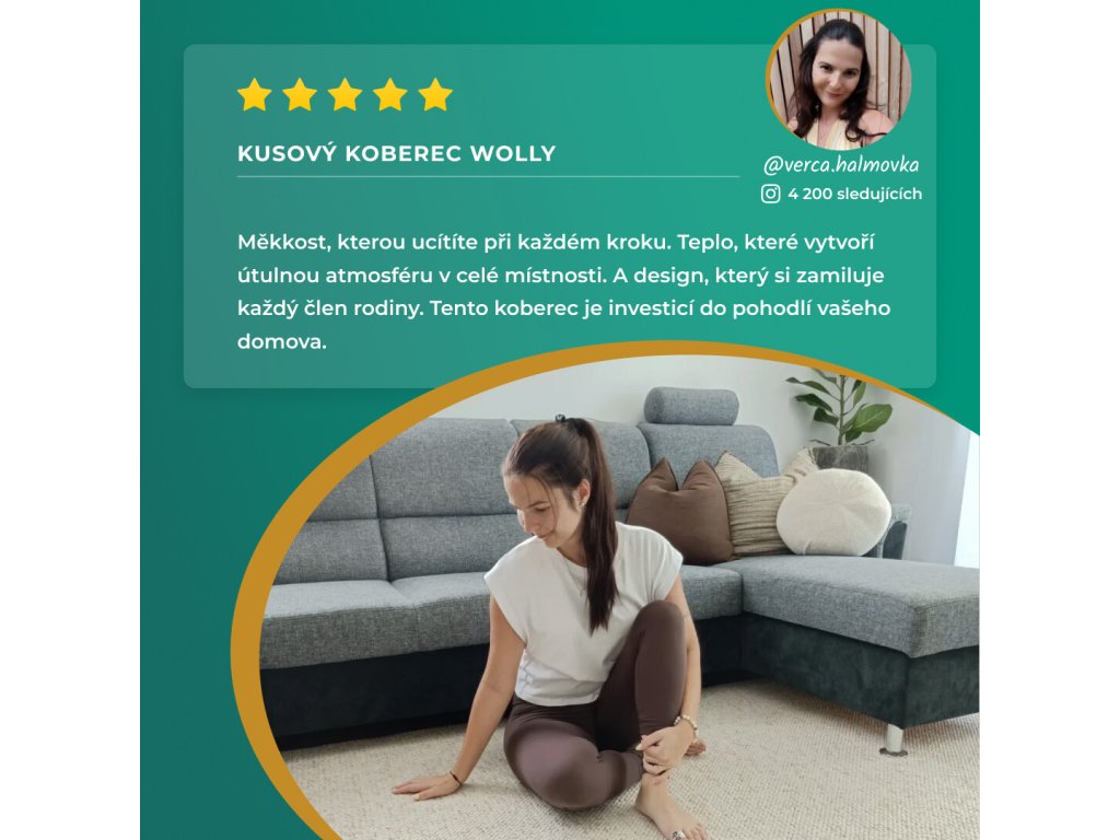 Koberec Wolly 102840 je vyroben ze syntetického materiálu se vzhledem vlny. Má perfektní vlastnosti jako je pevnost, pružnost, odolnost. Je velice jemný na dotek, má 12 mm dlouhý vlas. U tohoto koberce oceníte jednoduché barevné provedení, které zkombinujete s každým interiérem.BT Carpet