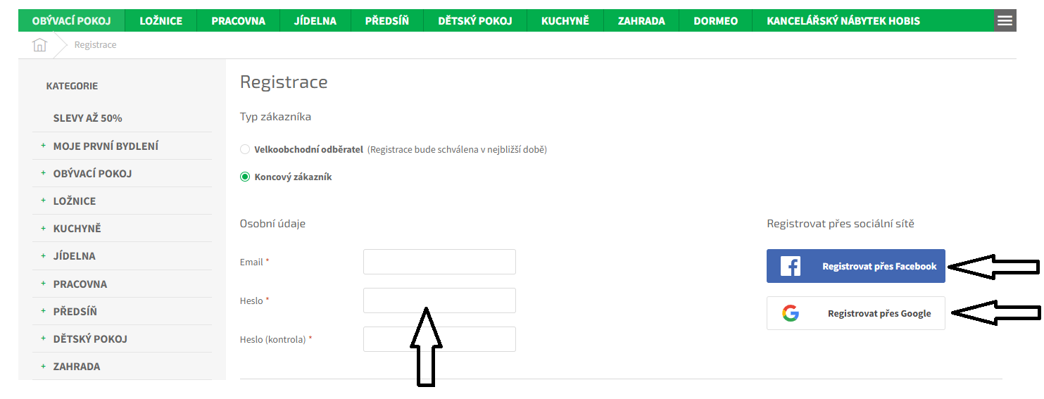 2.KROK - vyplňte osobní údaje nebo máte možnost registrovat přes Facebook a Google