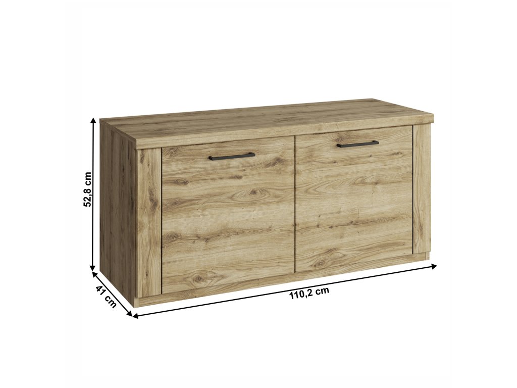 Botník DORSI 2D má rozměry 110,2 cm na šířku, 41 cm hloubku a 52,8 cm výšku, což je vhodné do většiny předsíní.