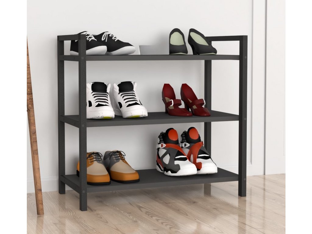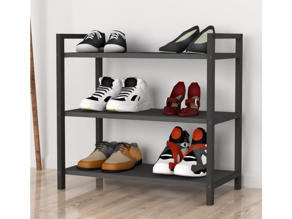 Botník PAULO antracit nabízí tři police z LTD desky, ideální pro přehledné uspořádání bot v předsíni. Kovový rám zajišťuje stabilitu a odolnost.
