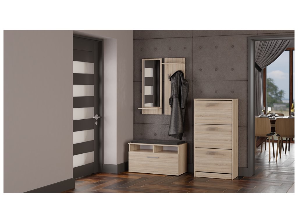 Nadčasový botník Pura s praktickými výklopnými dvířky je ideální volbou do každé předsíně. Pečlivé zpracování a minimalistický design dodají vaší předsíni styl i funkční úložný prostor. Nábytek je vyroben z vysoce kvalitního lamina, které je snadno udržovatelné a odolné proti oděru, dlouhou životnost nábytku zajišťují hrany zakončené ABS materiálem.