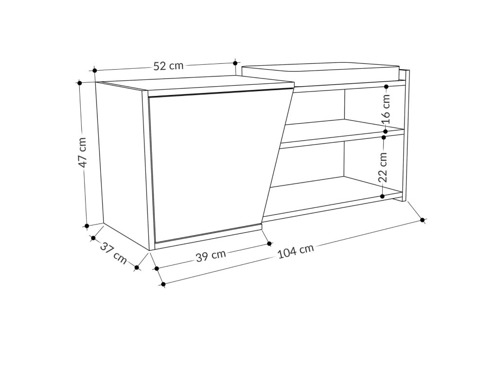 Náš botník není jen praktický, ale také esteticky přitažlivý, díky kombinaci barev dubu a antracitu. Plná dvířka skříňky nabízejí dostatek úložného prostoru pro vaše obuvi a příslušenství, zatímco pohodlné sezení a lavice poskytují příjemné místo k obouvání.