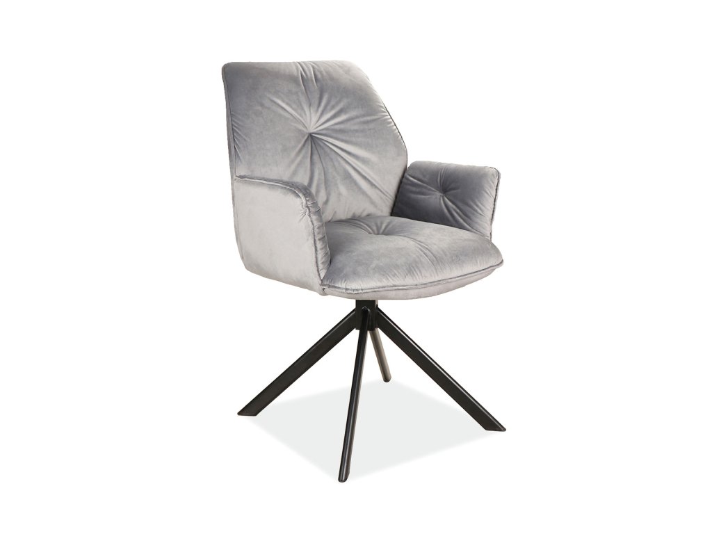 Křeslo je čalouněno kvalitní látkou Bluvel 14 - světle šedá. Nohy židle jsou kovové, v černé barvě.