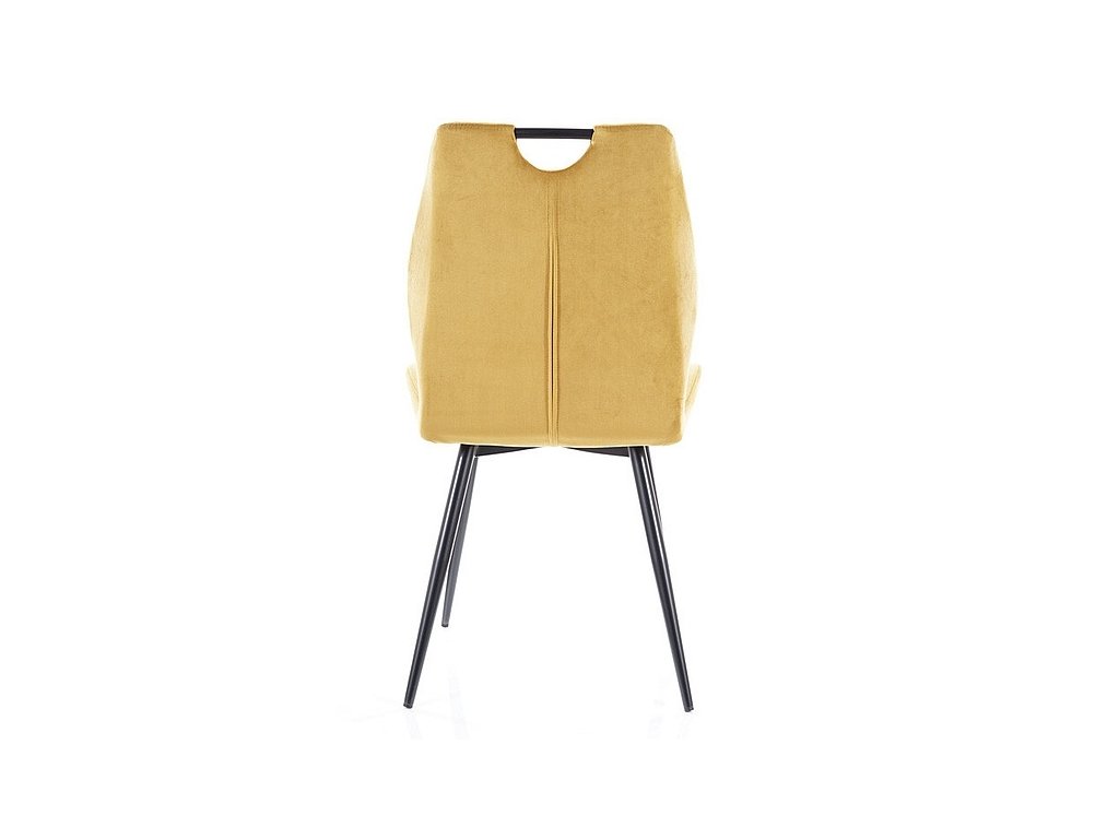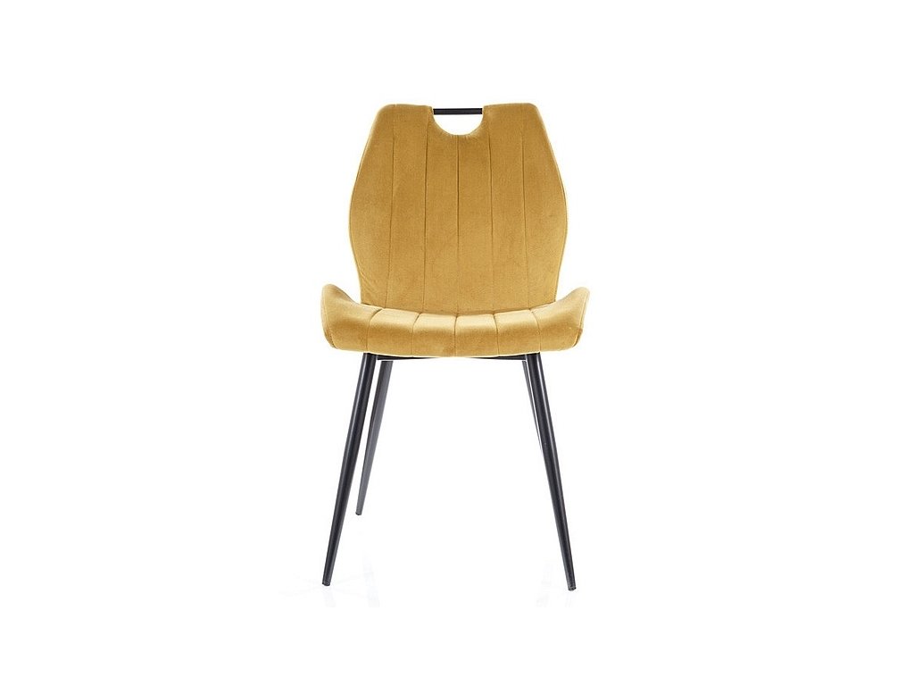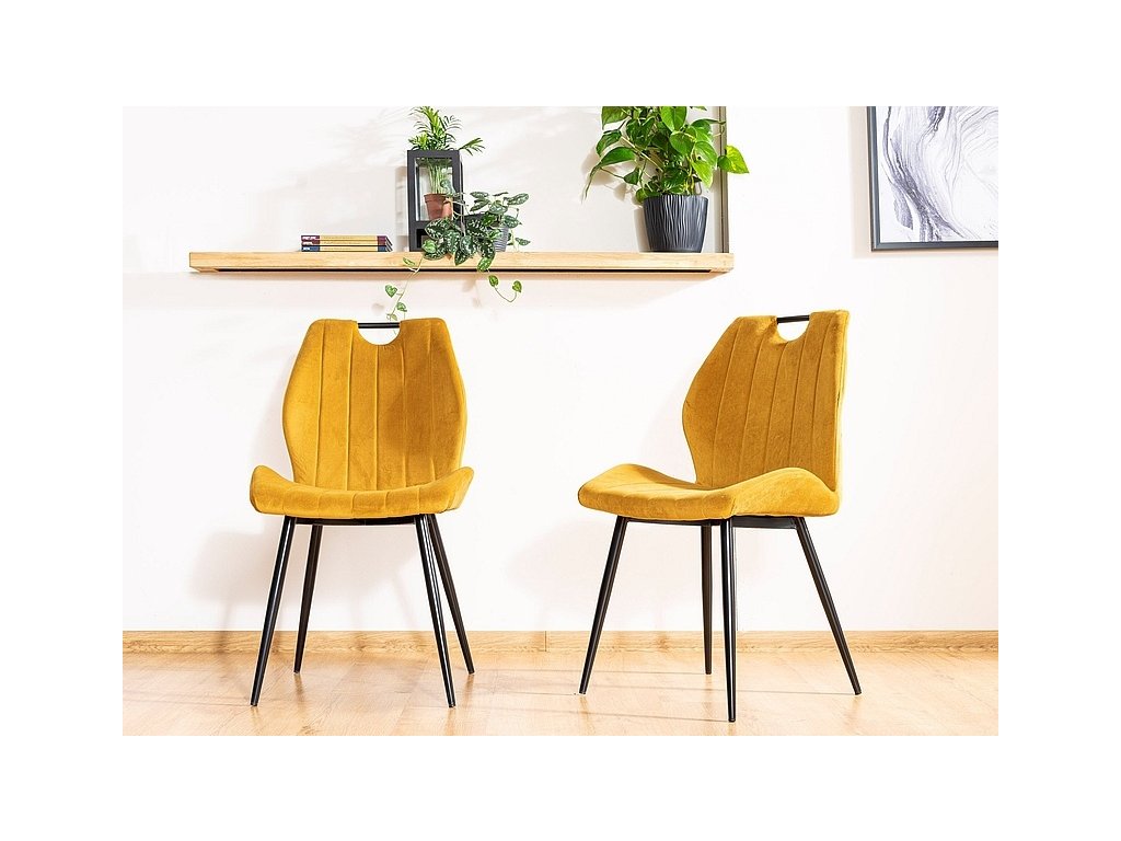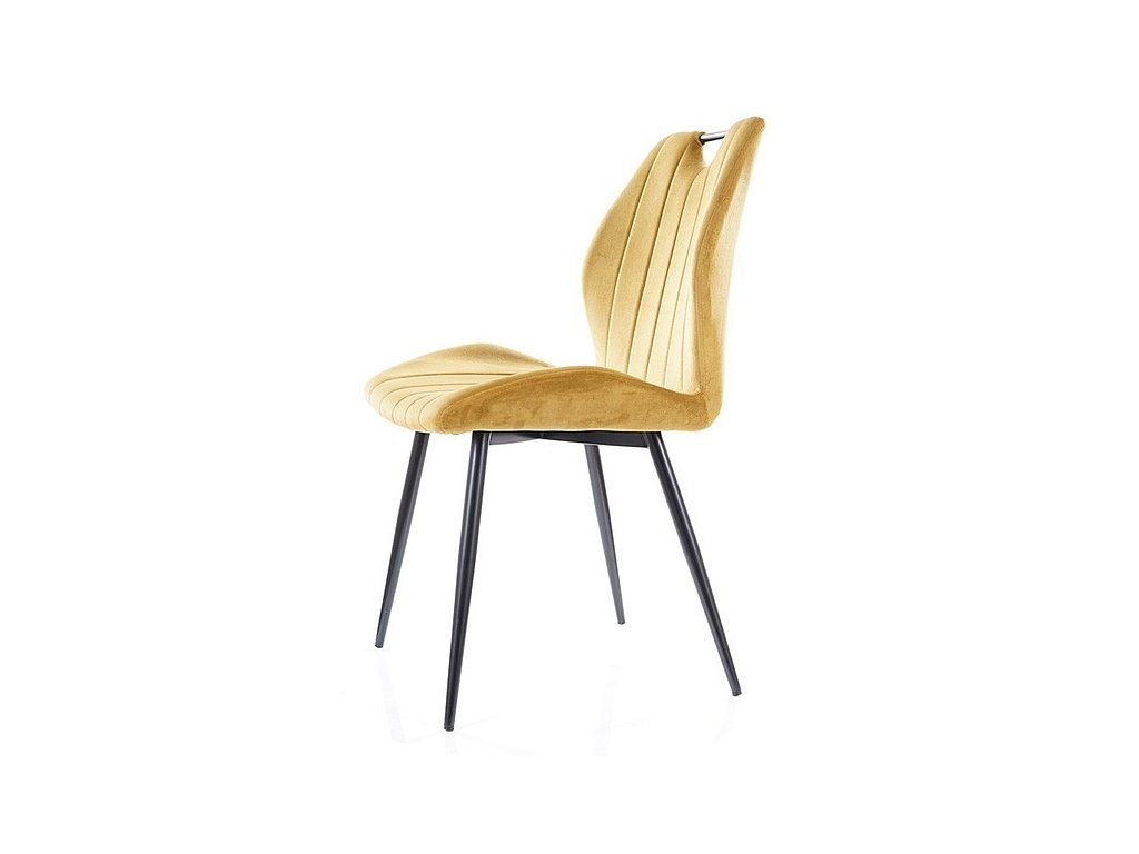 Jídelní židle, potah žlutá sametová látka, kovové nohy, černý matný lak