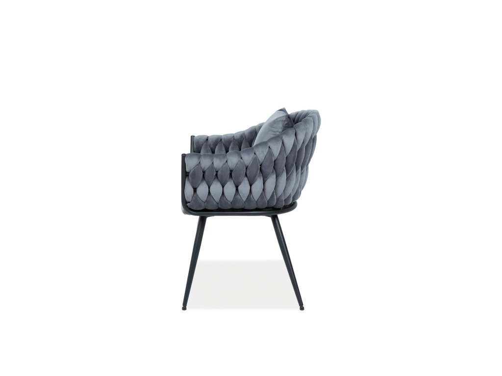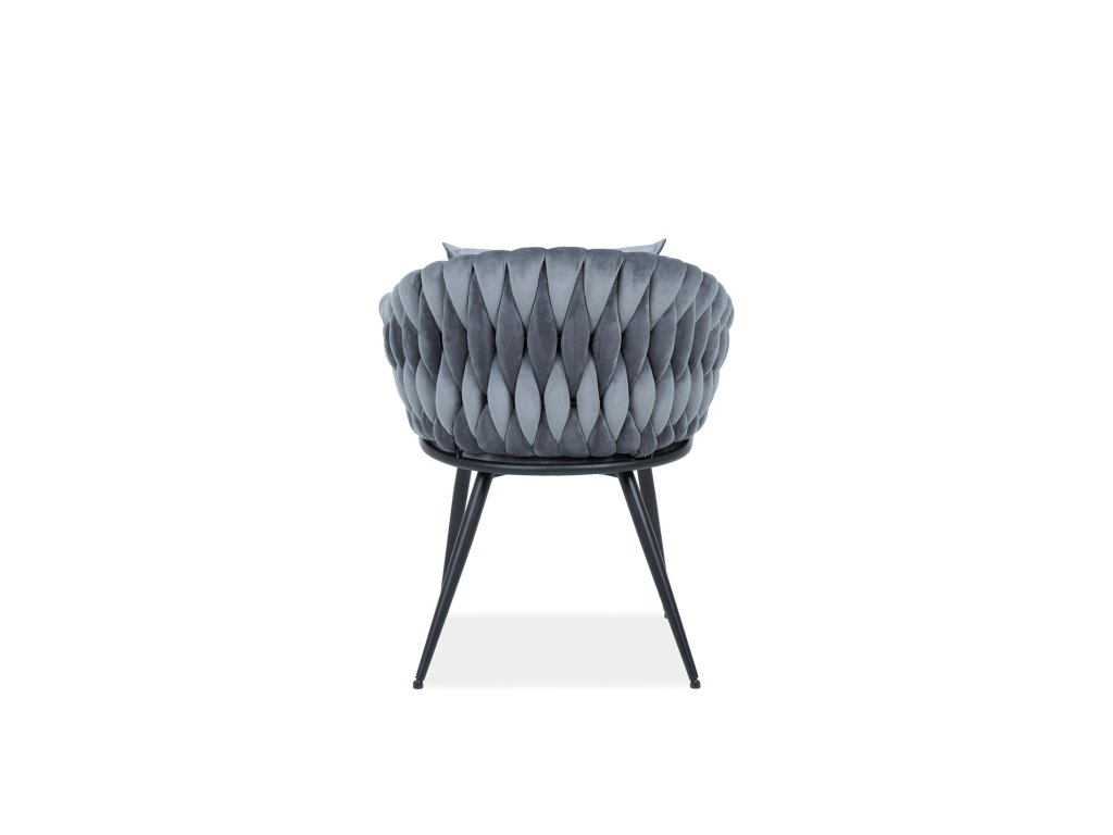 Sedák s opěrkou jsou očalouněny kvalitní sametovou látkou Bluvel 14 ve světle šedé barvě. Konstrukce židle je vyrobena z kovu v černé barvě. Polštář v ceně židle.