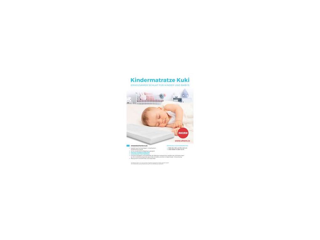 Praktická matrace Kuki vyniká skvělou pružností, lehkostí, dobrou propustností vzduchu a svojí pevností. Matrace je vyrobena z vysoce kvalitní, středně tvrdé pěny. Matrace Kuki splňuje požadavky pro každodenní používání a byla vytvořena pro podporu zdravého spánku a správný vývoj vašeho dítěte. Důležitou roli hraje zvýšená pevnost a pružnost matrace, jelikož dítě tráví v tomto období na matraci podstatnou část svého života. V případě špatně zvolené, příliš měkké matrace, může docházet k prošlapování nohou až do roštu postýlky, a tím i následné deformování nožiček. Matrace je vhodná pro citlivou dětskou pokožku, neobsahuje žádné lepidlo a je vyrobena z bezpečných materiálů pro děti. Potah lze rozdělit na dvě části, je tak lehce snímatelný a vleze se do každé pračky. Potah prošitý rounem vytváří příjemnou plochu pro ležení vašeho miminka.