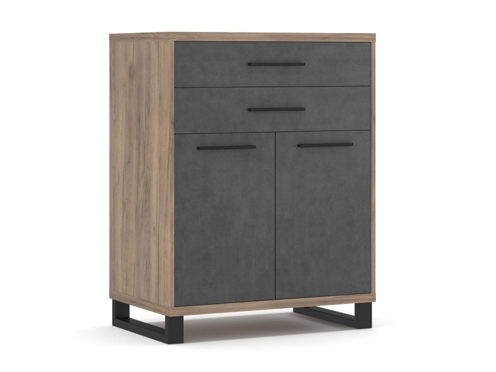 Pevné kovové nohy podtrhují loftový ráz nábytku. Úchyty jsou kovové. V naší nabídce najdete široký výběr komponentů této kolekce, které si můžete dokoupit. Dodáváme v demontovaném stavu.
