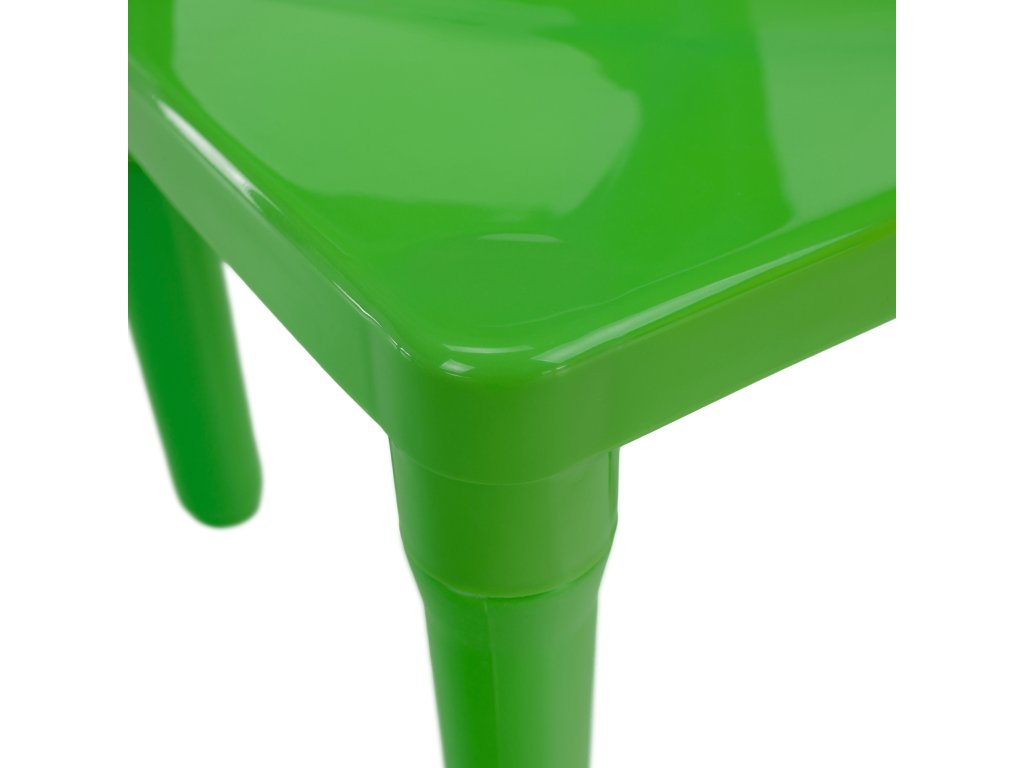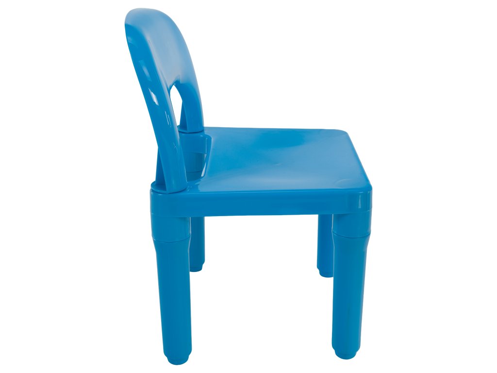 Stůl a židle mají pevnou konstrukci s nosností do 50 kg. Výška sedu je přizpůsobená dětským potřebám pro pohodlné sezení.