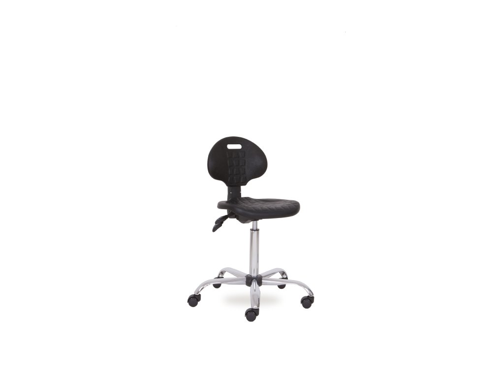 Otočná židle z kvalitního polyuretanu s výškově a hloubkově nastavitelným opěrákem vhodná nejen do laboratoří a dílenských provozů. Díky možnosti různých délek pístů a typů křížů má velmi široké využití. | opěrák a sedák z vysoce kvalitního polyuretanu, asynchronní mechanismus, chromový kříž, univerzální kolečka Ø 60mm, židli je možné dovybavit chromovým kruhem pro podpěru nohou a vyšším pístemDoplňkové parametry