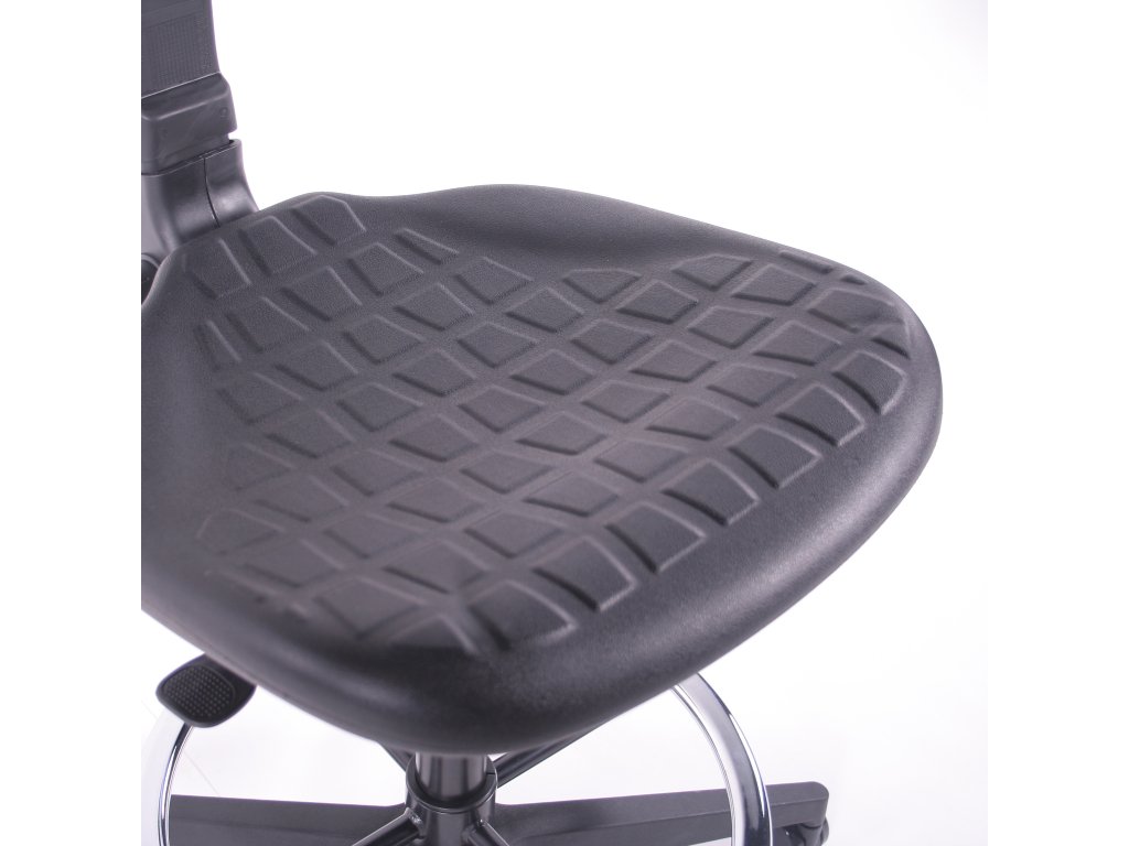 Otočná židle z kvalitního polyuretanu s výškově a hloubkově nastavitelným opěrákem vhodná nejen do laboratoří a dílenských provozů. Díky možnosti různých délek pístů a typů křížů má velmi široké využití. | opěrák a sedák z vysoce kvalitního polyuretanu, cpt mechanismus, nylonový kříž, univerzální kolečka Ø 60mm, židli je možné dovybavit chromovým kruhem pro podpěru nohou a vyšším pístemDoplňkové parametry