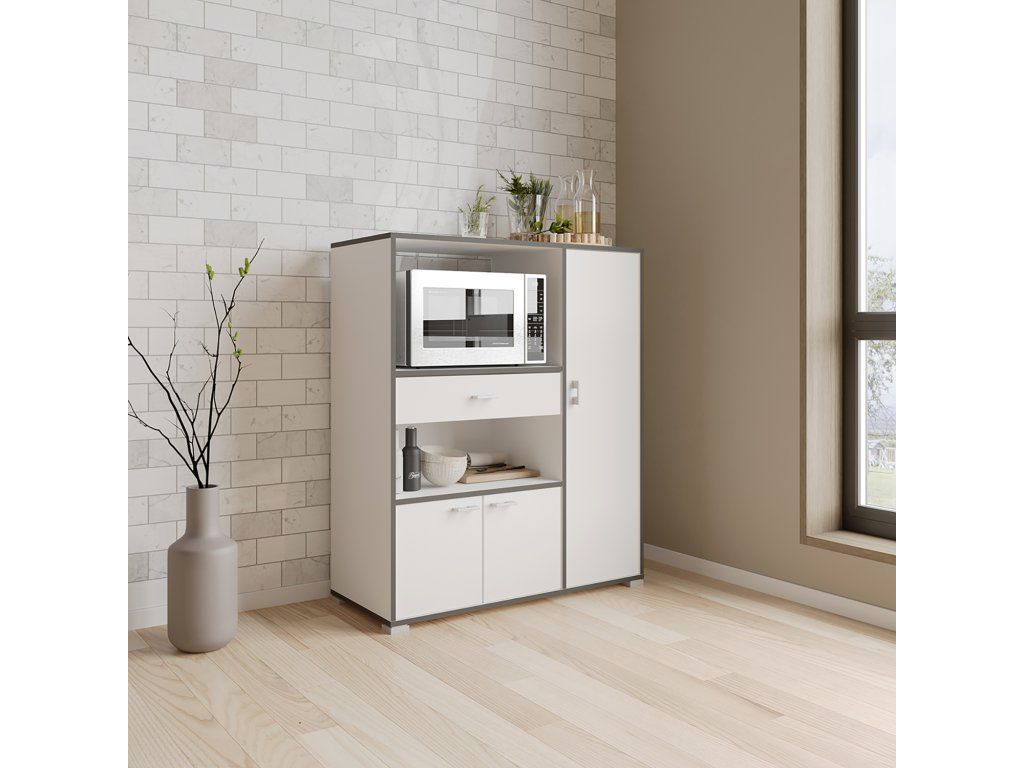 Bílá skříňka na mikrovlnnou troubu BUZZ s policemi, 56x40x35 cm