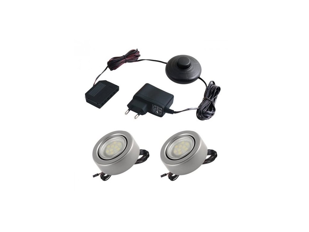 Sestava 2-L-BC-2-0000-01 obsahuje dvě bodová světla a transformátor. Je určena k instalaci pod závěsné police nebo skříňky v obývacím pokoji pro příjemné teplé bílé LED osvětlení.