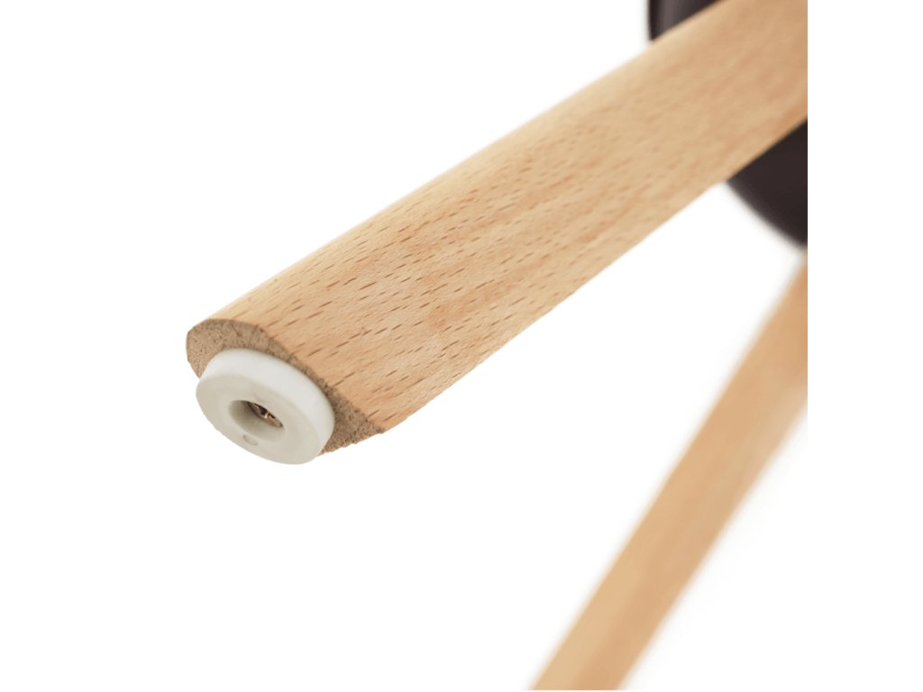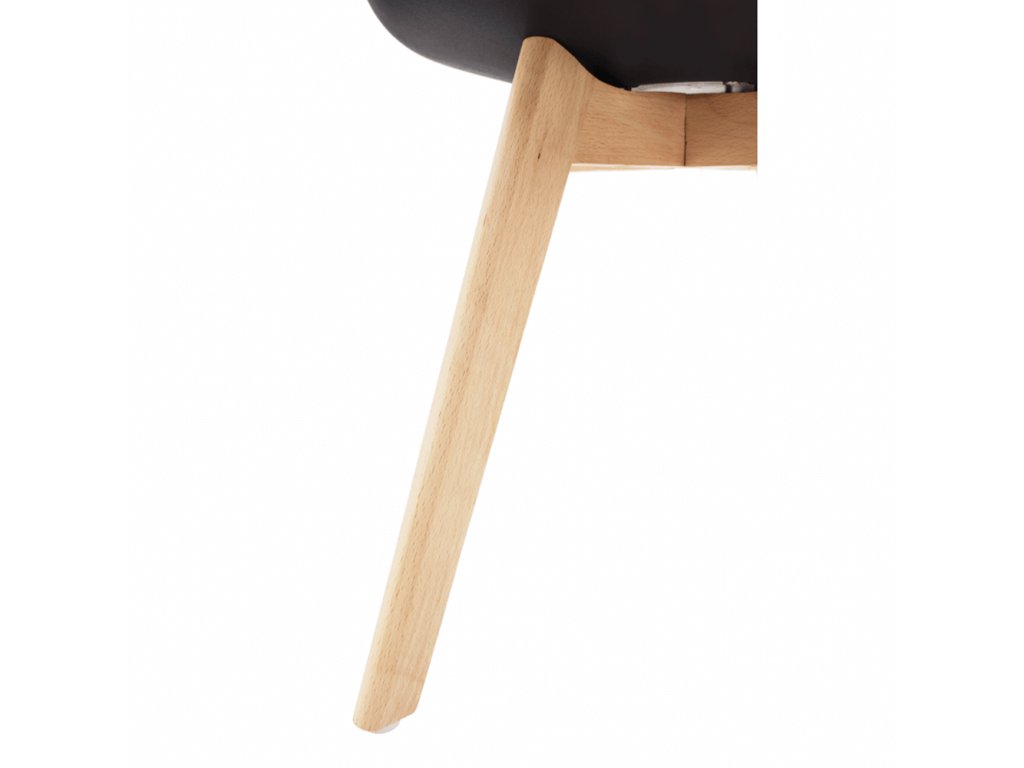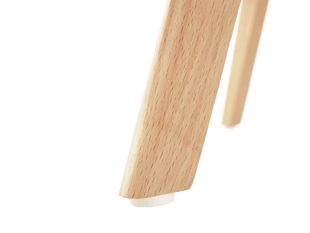 Židle kombinuje dřevo, plast a ekokůži s vysokou oděruodolností textilie, což zaručuje dlouhou životnost i při častém používání v domácnostech i komerčních prostorách.