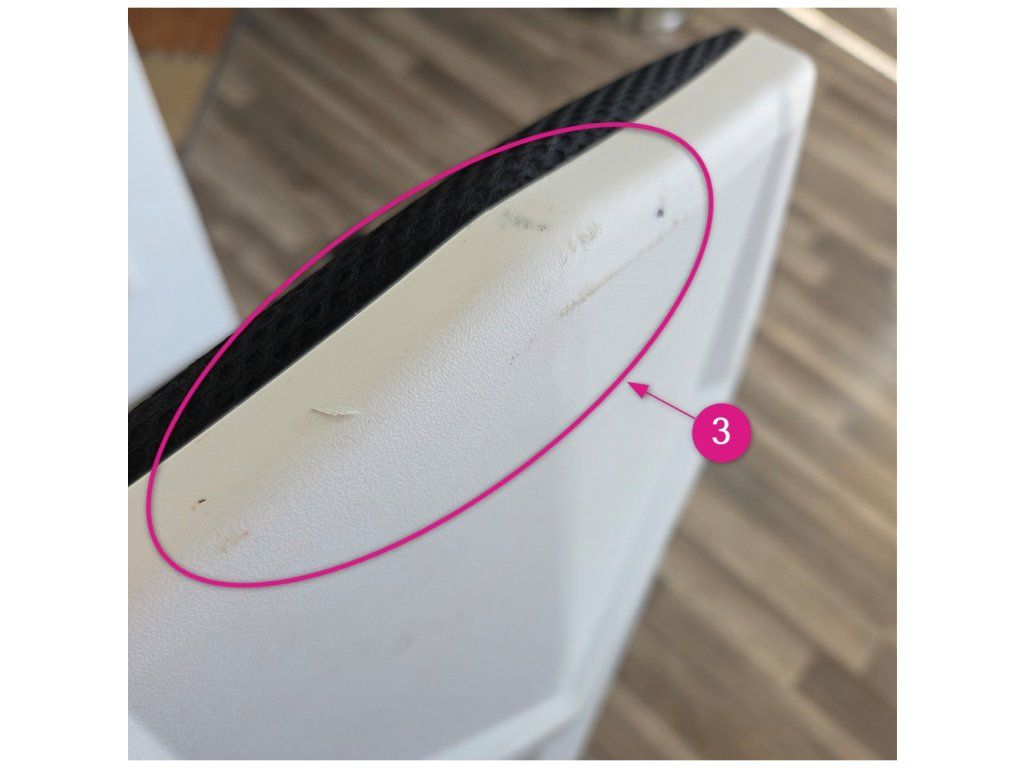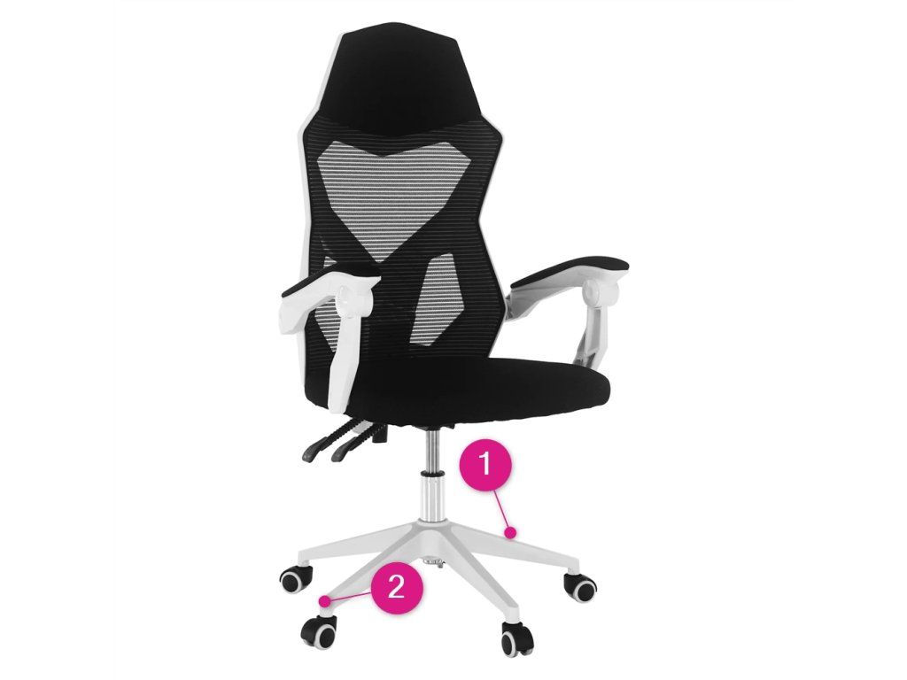 Černobílá síťovina zajišťuje cirkulaci vzduchu a oděruodolnost textilie podle testu Martindale. Plastová podstava a univerzální kolečka umožňují snadný pohyb na různých typech podlah.